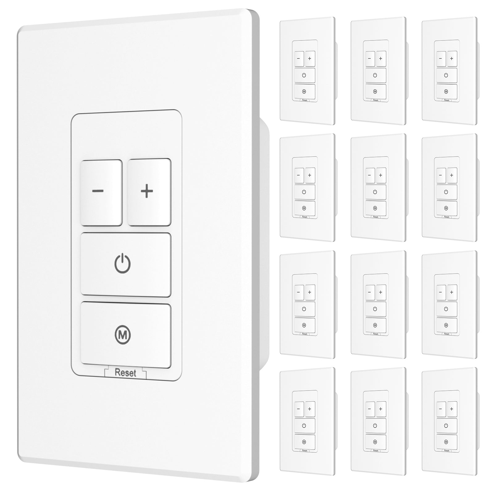 • Universal Lighting Control: This 6/12-pack of white dimmer switches is suitable for up to 150-Watt dimmable LED/CFL incandescent bulbs or 450-Watt halogen bulbs.