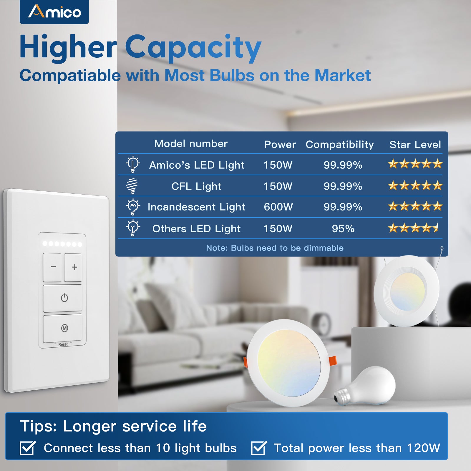 • Optimal Complement: Maximum compatibility with Amico recessed ceiling light, tested hundreds of times for flicker-free dimming