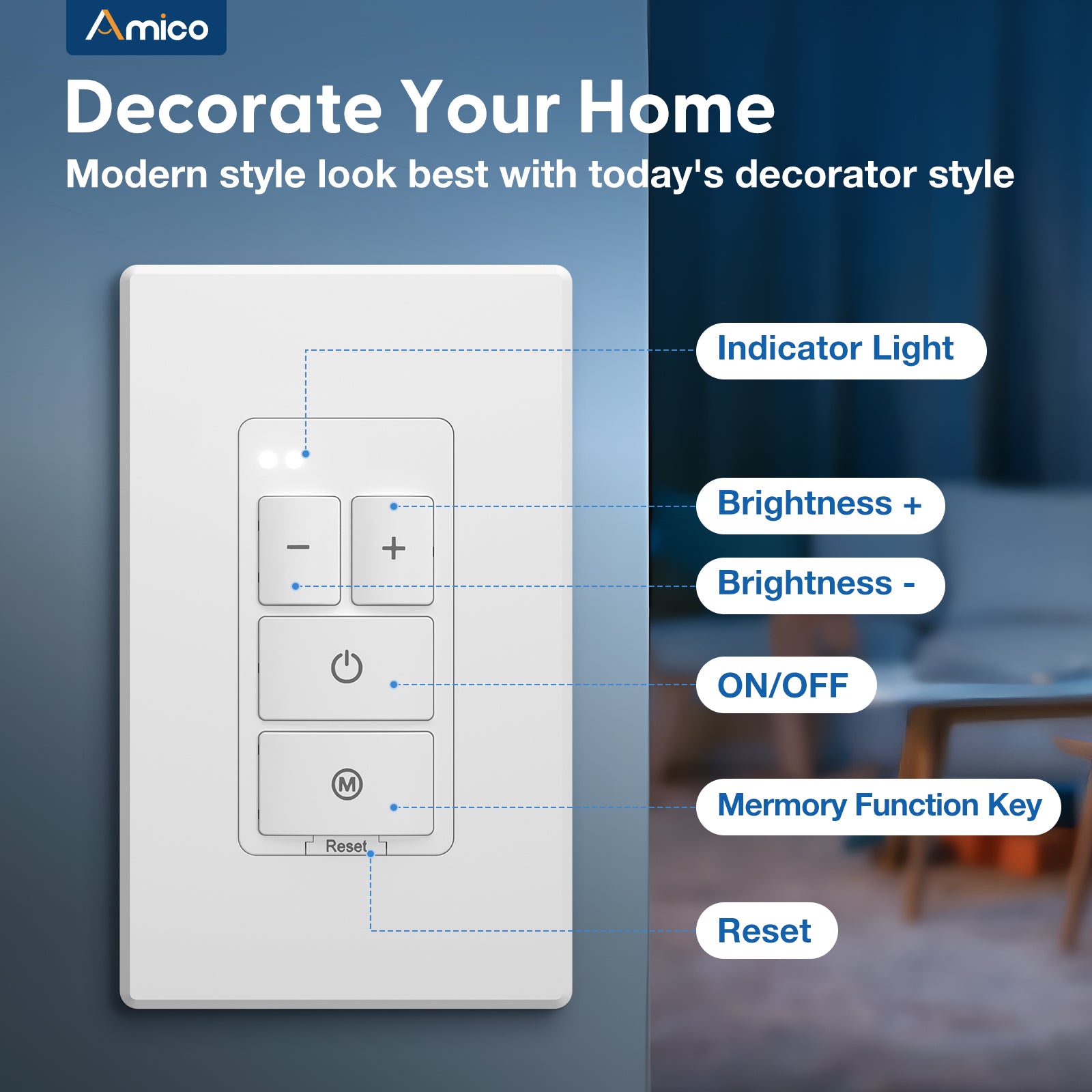 • ETL Certified: Amico's Electronic dimmer light switches meet rigorous ETL high standards, suitable for residential, commercial, and office use