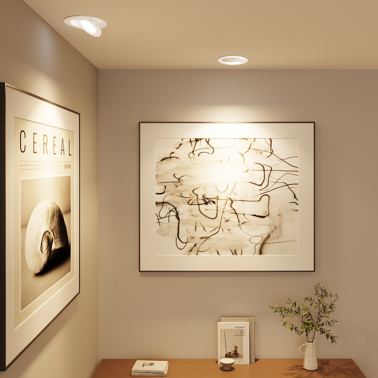 • 360°&90° Adjustable Direction: The gimbal light supports 360° horizontal rotation and up to 90° vertical rotation, which can meet any lighting angle you need. It emits a bright, uniform light and is the perfect replacement for spotlights, ideal for directional lighting and highlighting artwork/murals.