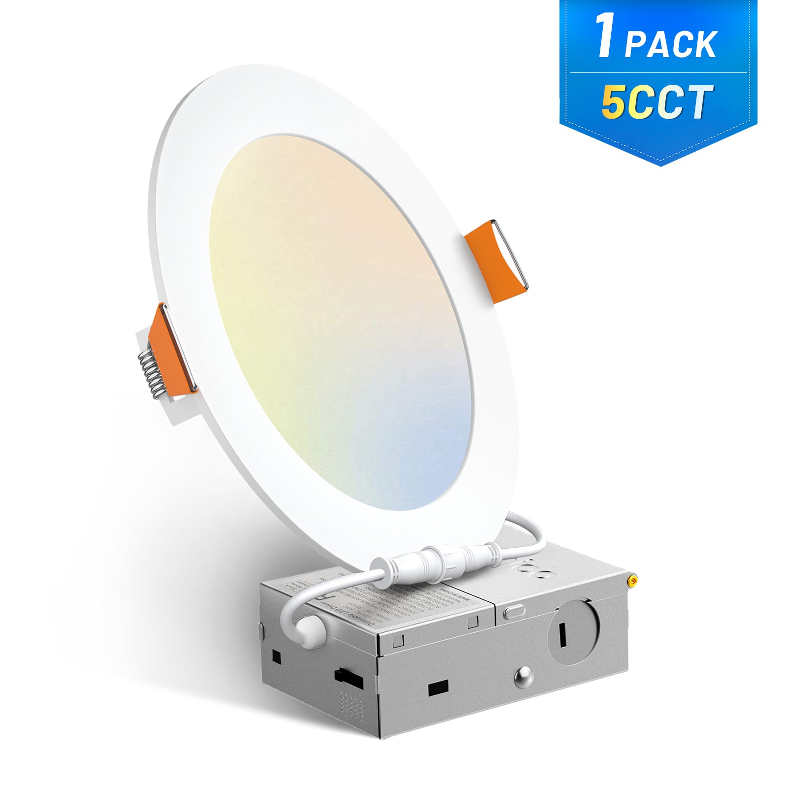 - 5 CCT-in-1: 5 color temperature(2700K, 3000K, 3500K, 4000K, 5000K) is selectable to you, which successfully eliminates the hassle of returning or exchange products due to inappropriate color temperature. Just slide the switch on the side of the J-box and you will get the most-desired color that best fit in your room type.