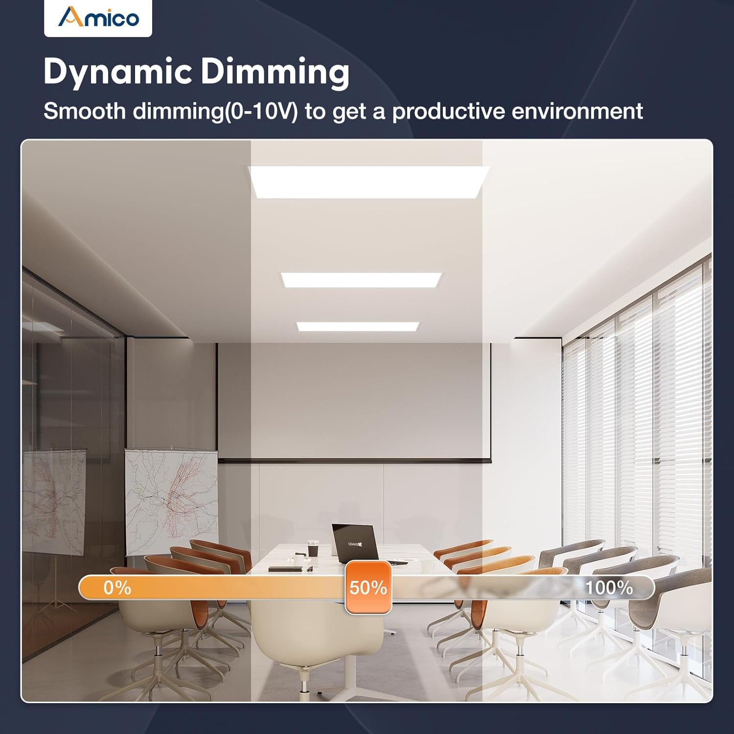 2x4 LED Panel Light, 30W/40W/50W, 6250LM, Selectable Wattage & CCT (4000K/5000K/6500K), 0-10V Dimmable, Drop Ceiling Light