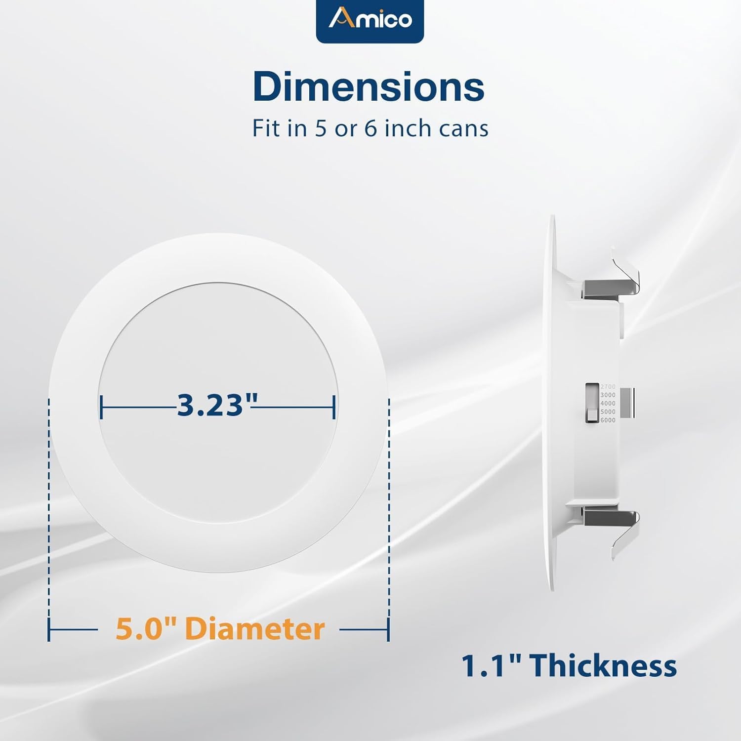 - Selectable Colors: Amico can lights have 5 color temperature selectable, 2700K, 3000K, 4000K, 5000K, 6000K. Don't worry about what color temperature to buy, avoid the hassle of returning or exchanging these due to inappropriate color temperature.
