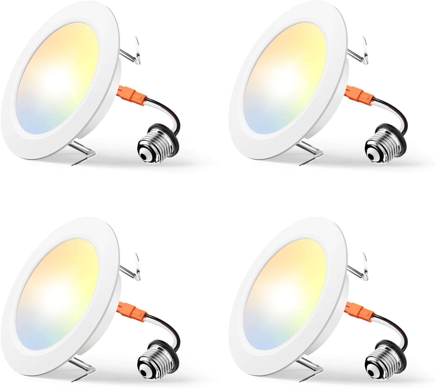 - Simple Installation: Saves you time and electrician costs. 4 inch led recessed can lights to have universal E26 base makes installation as easy as a bulb, can be installed independently without an electrician, and will only take you 3 minutes to install one.
