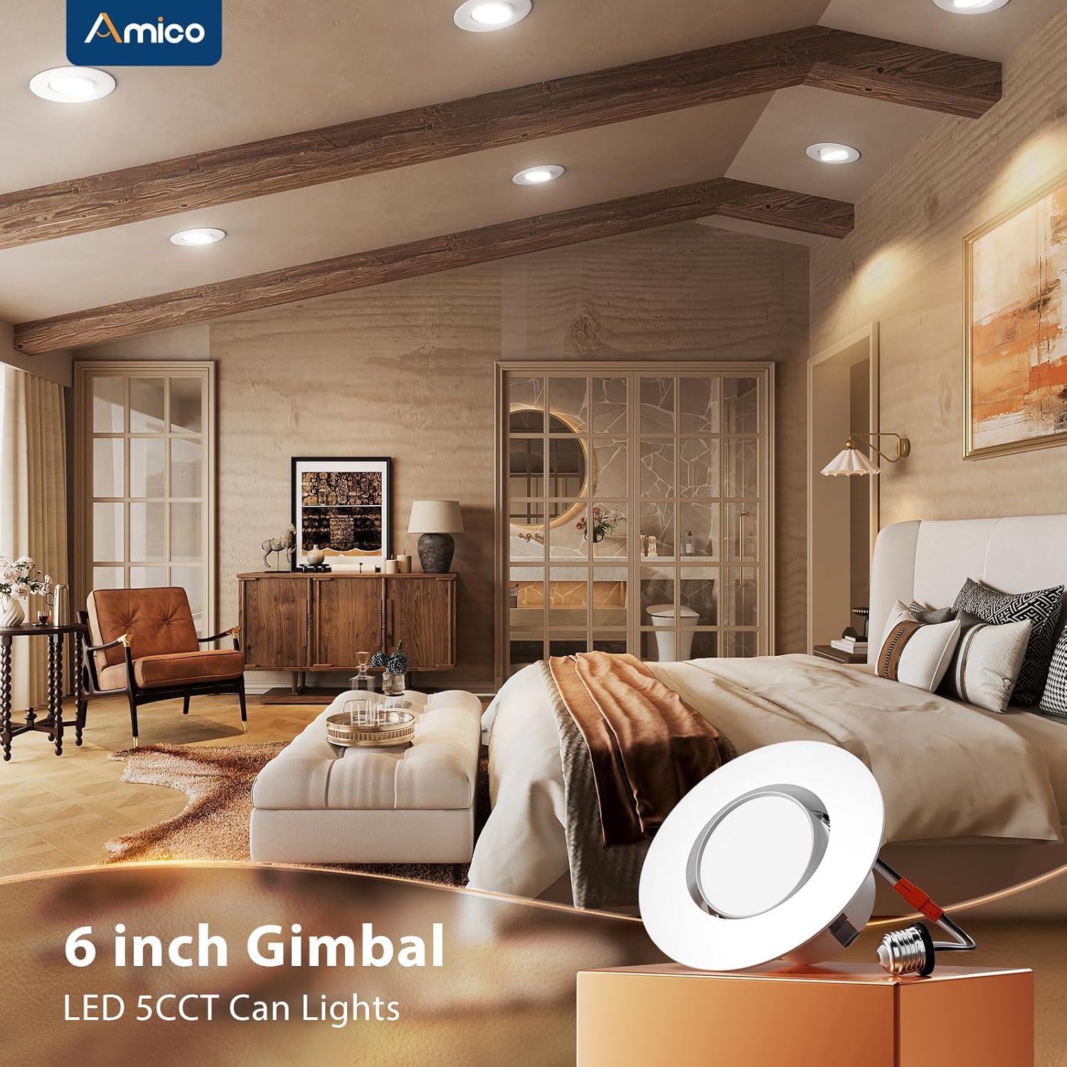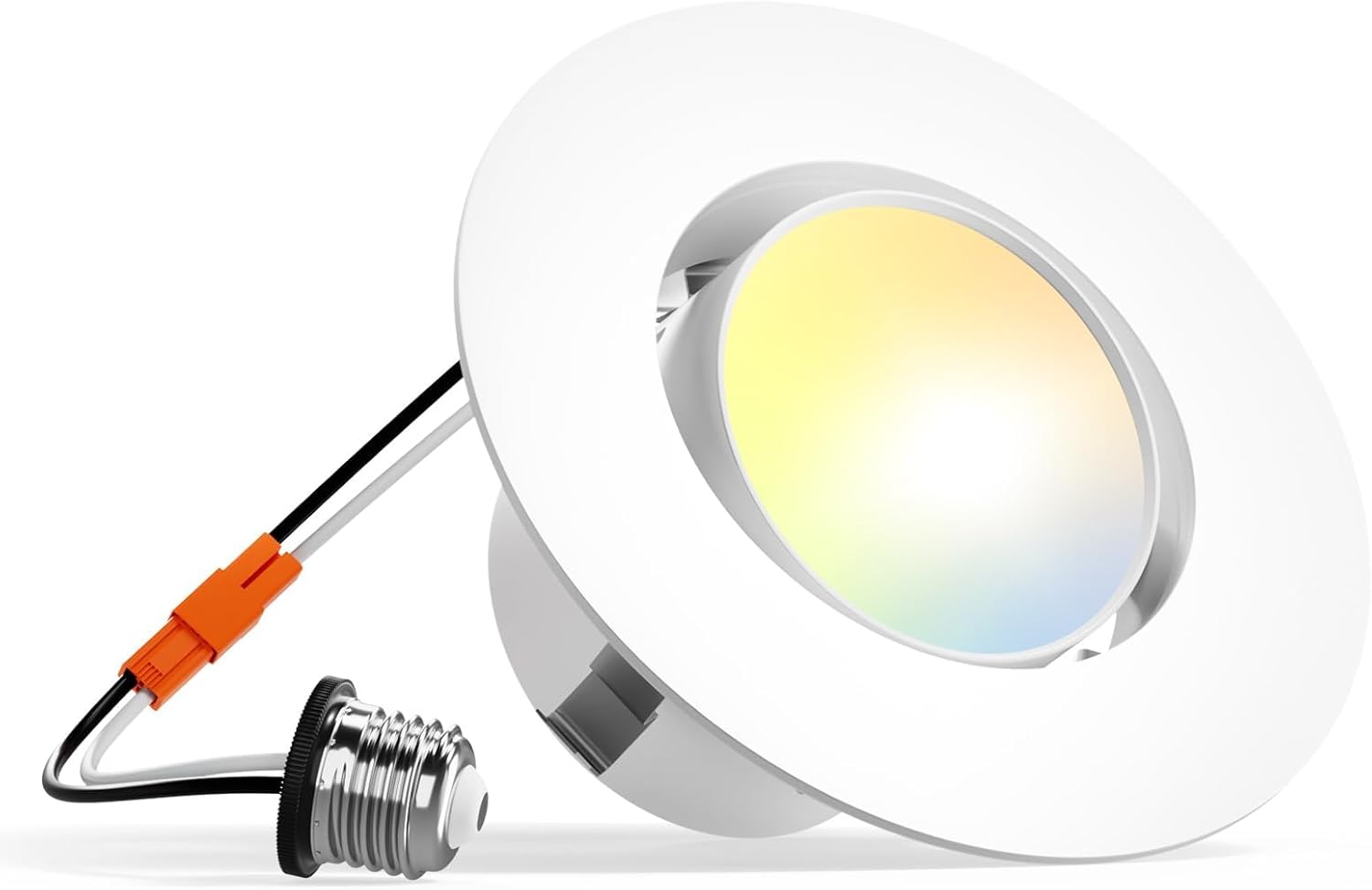 4 Inch Retrofit Eyeball Gimbal Can Lights, Slim Design, Selectable CCT, 900 Lumens