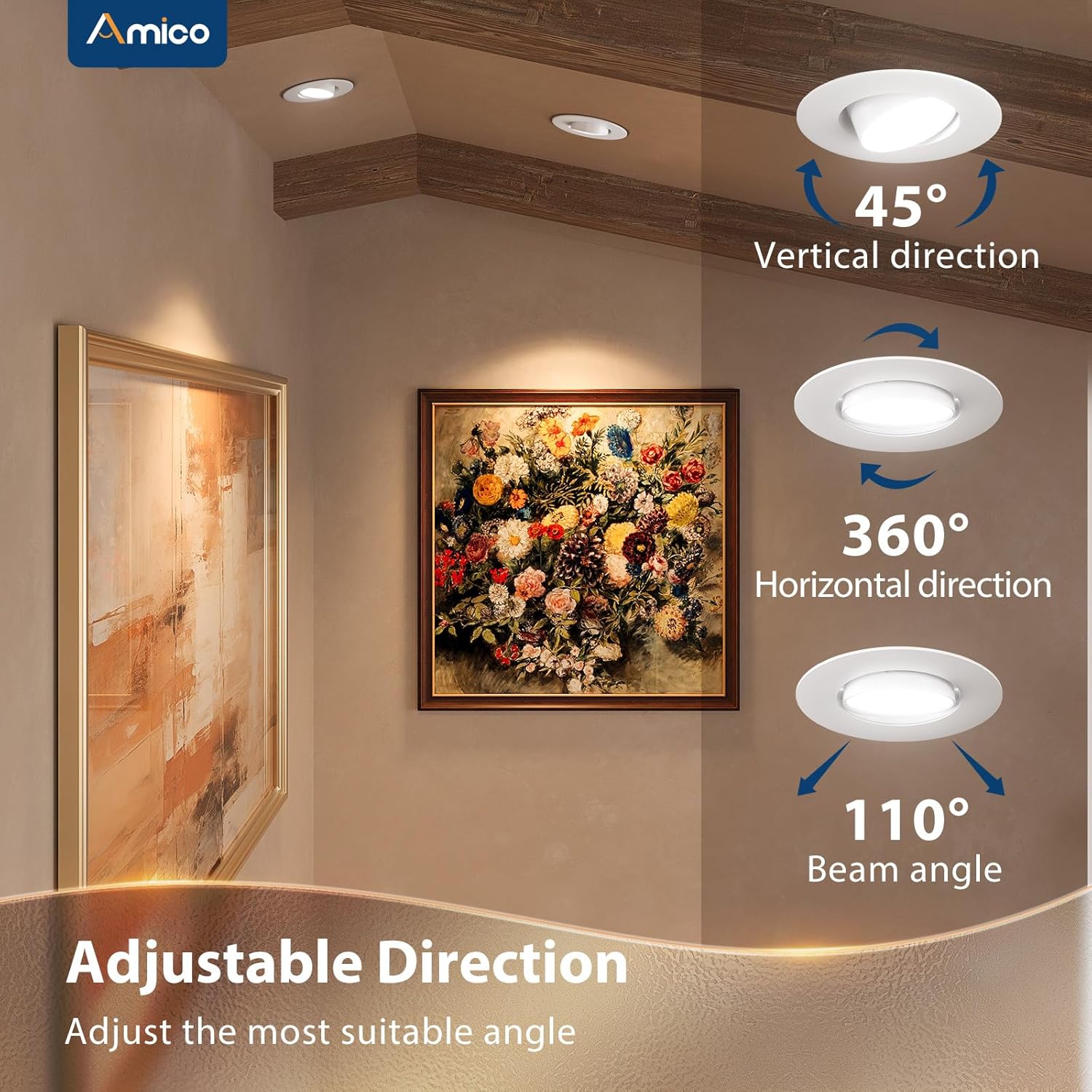 - [Adjustable Angles] With a swiveling lens, this LED Gimbal Downlight offers the ability to focus light on artwork, walls, sculptures, and accent pieces in your home or office. Tilt the optic 45° and swivel a full 360°.