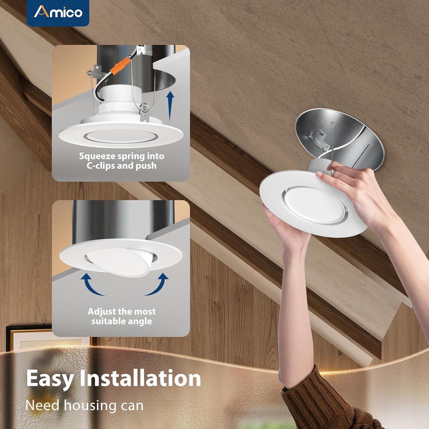• [Simple Installation] 6-inch led recessed lights to have a universal E26 base making installation as easy as a bulb, can be installed independently without an electrician, and will only take you 3 minutes to install one. Saves you time and money.