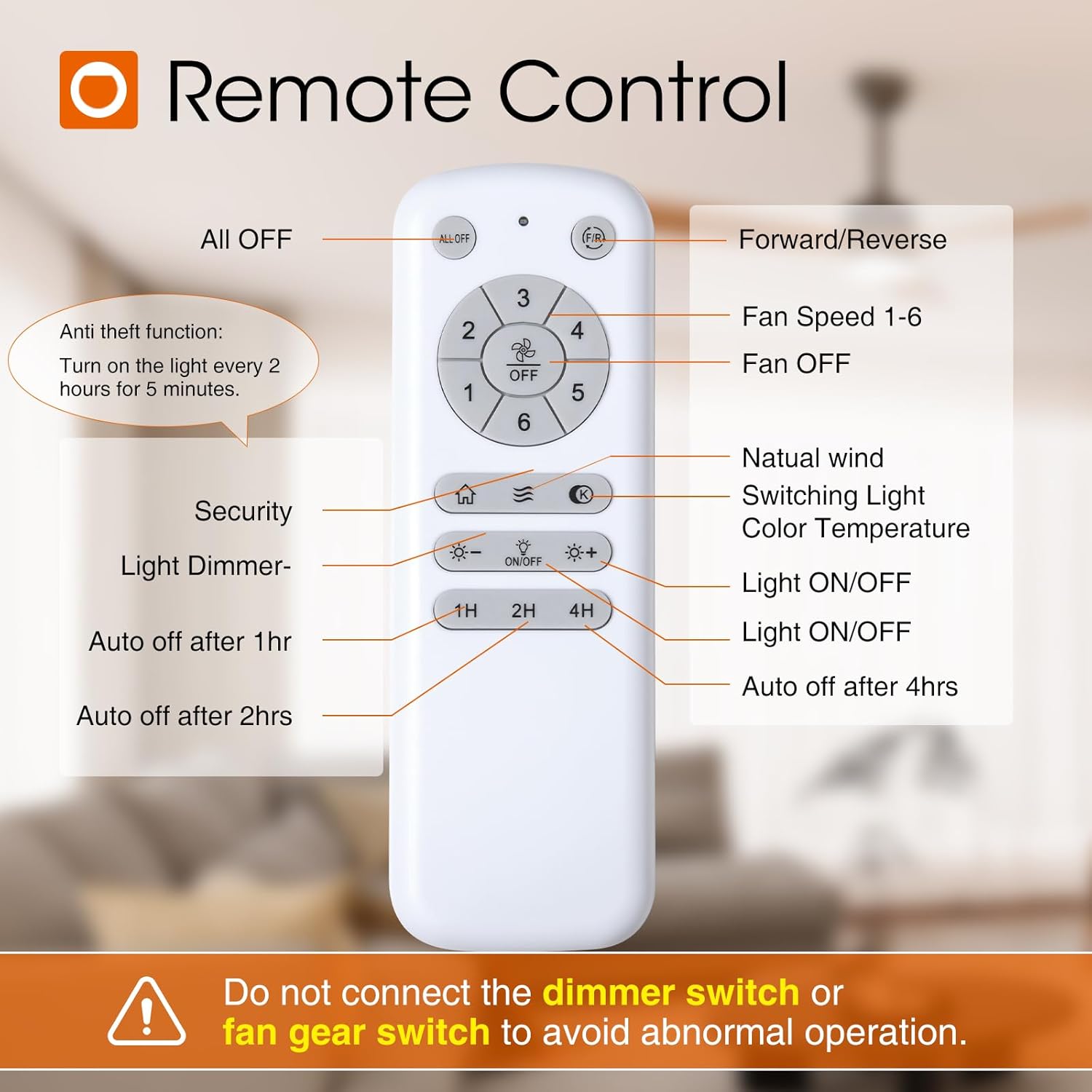 - Customizable Light: Depending on your need for the space, the light output you need can vary. If you’re having a cozy night in, you may need less light, while activities like family game night or homework time may need more. Our ceiling fans with lights are dimmable (10%-100%) for allowing you to find the ideal light for every occasion. At the same time, you can also select from 3 color temperature: 3000K/4500K/6000K.