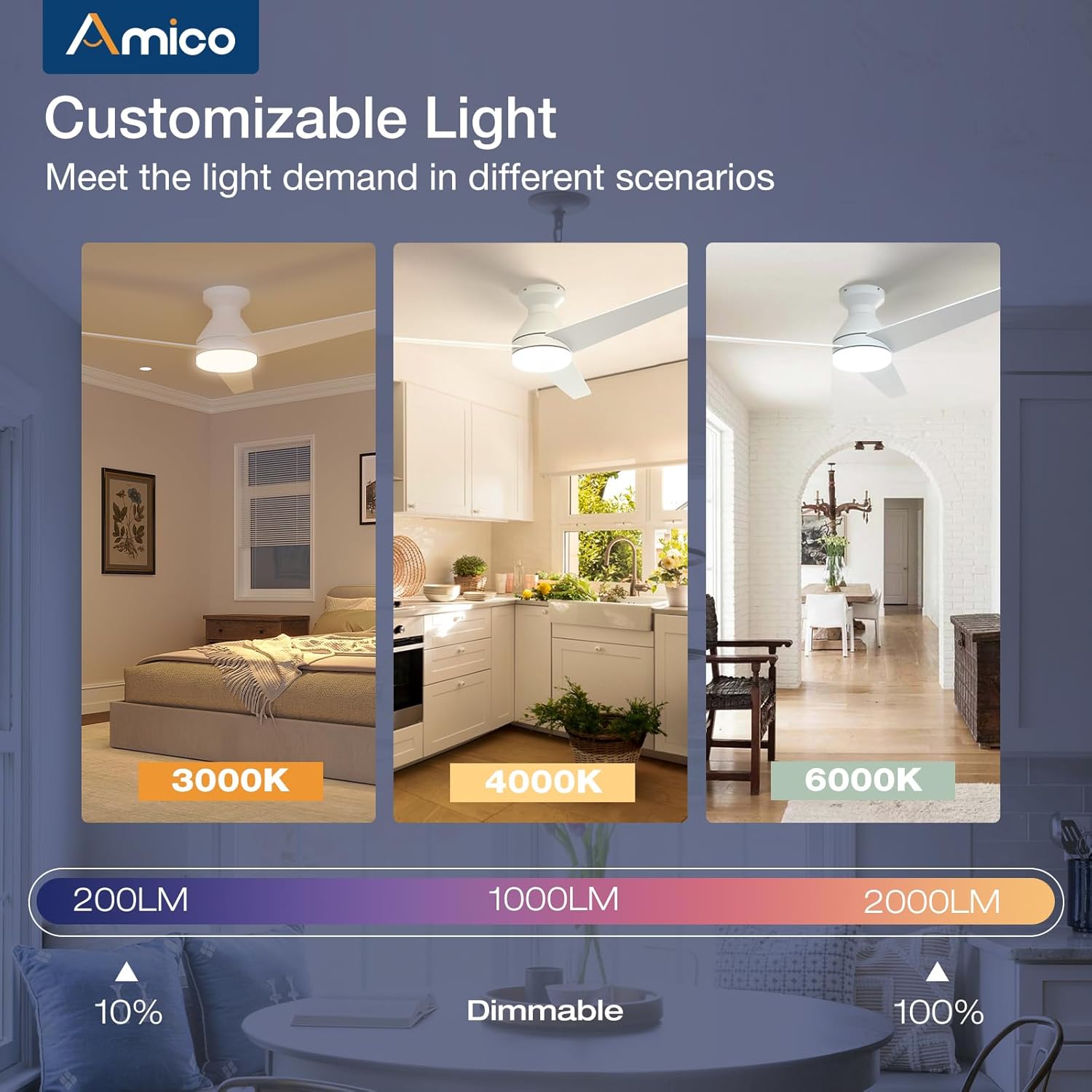 - Ceiling Fan with Light: Decorate your home with Amico ceiling fan! While bringing you coolness and comfort, it also becomes a beautiful decorative piece for your home. Our 52 inch small ceiling fan with light remote control has A energy efficiency rating, which can avoid 80% of electricity loss compared with traditional fans.