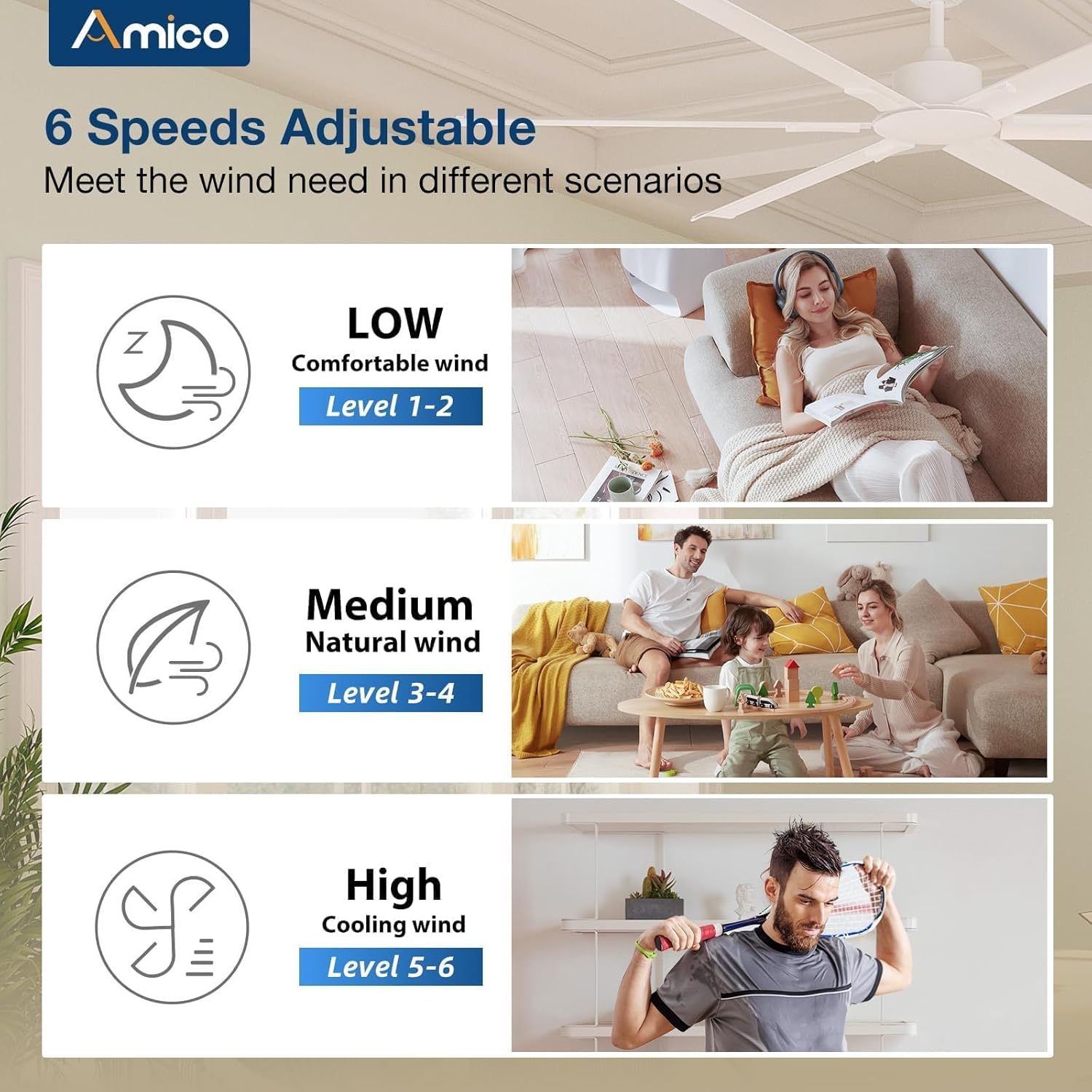 - Ceiling Fan without Lights: Decorate your home with Amico ceiling fan! Our 100 inch industrial ceiling fan has A energy efficiency rating, which can avoid 80% of electricity loss compared with traditional fans. Suitable for farmhouse, living room, bedroom, office, study, kitchen or other indoor/outdoor spaces. (Not to be exposed directly to rain).