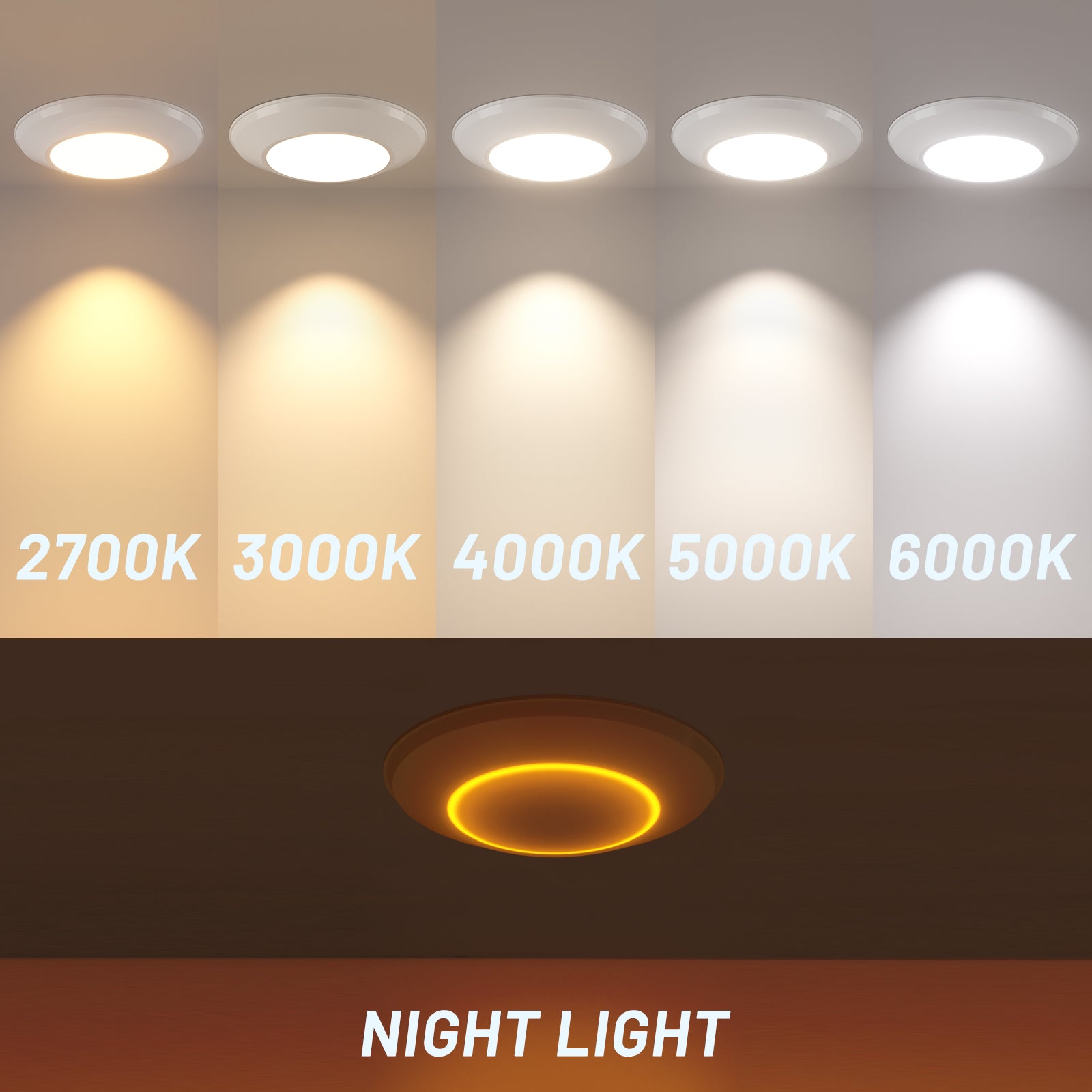 • [Versatile Color Temperatures] Choose from a range of 5 color temperatures (2700K, 3000K, 4000K, 5000K, 6000K) hassle-free. No need to worry about making the wrong choice; this feature eliminates the need for returns or exchanges due to inappropriate color temperature.