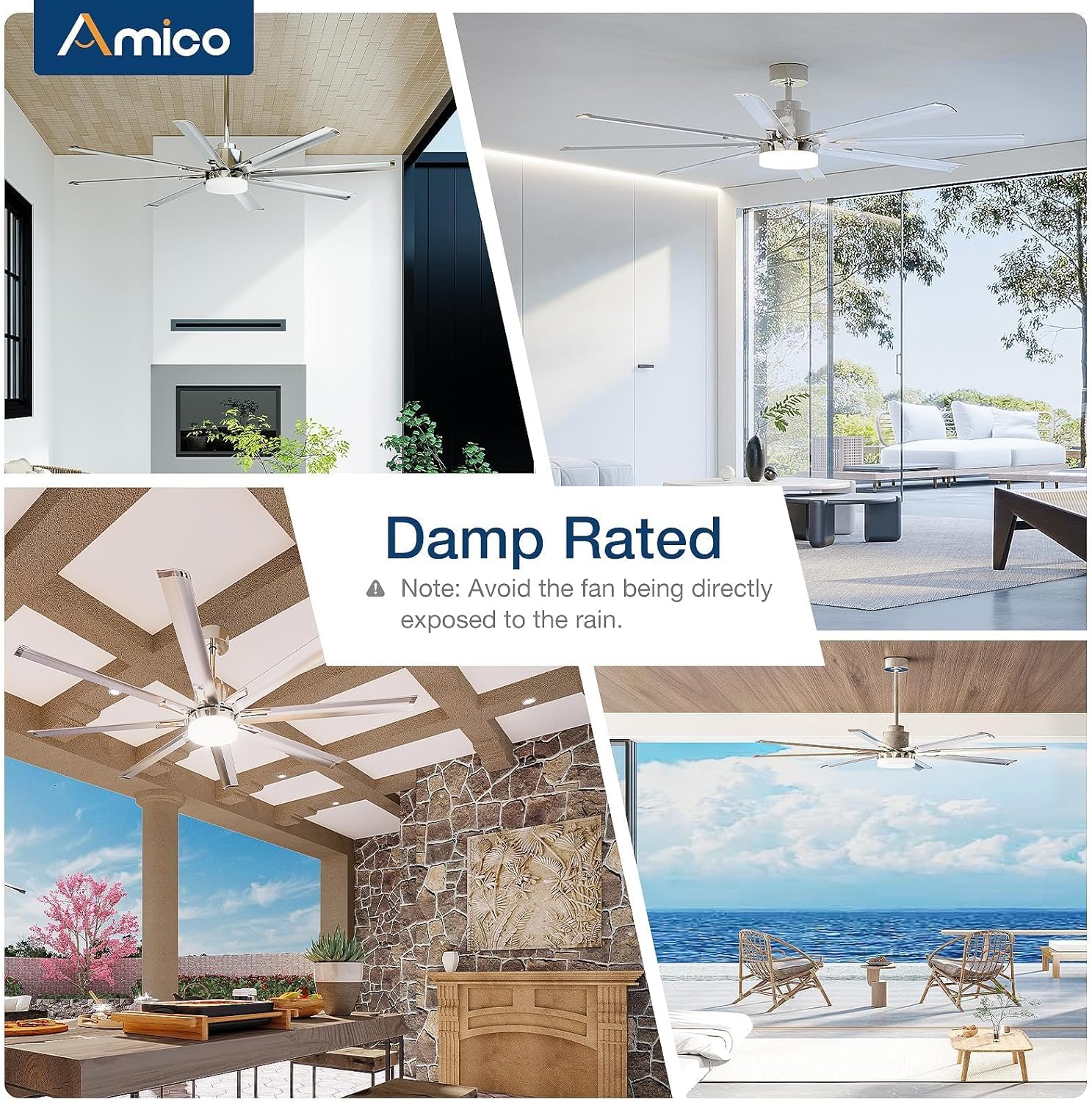- Industrial Design: The blades are accented with silver accents and a subtle blend of silver and nickel colors for a chic and sophisticated look. Perfect for minimalist, industrial, or modern aesthetics, this fan maintains a comfortably elevated level of sophistication for your space in a variety of large indoor and outdoor areas, such as stores, garages, offices, home patios, and spacious living rooms. It is also ideal for decks, gazebos, pergolas and other outdoor spaces (to avoid direct rain).