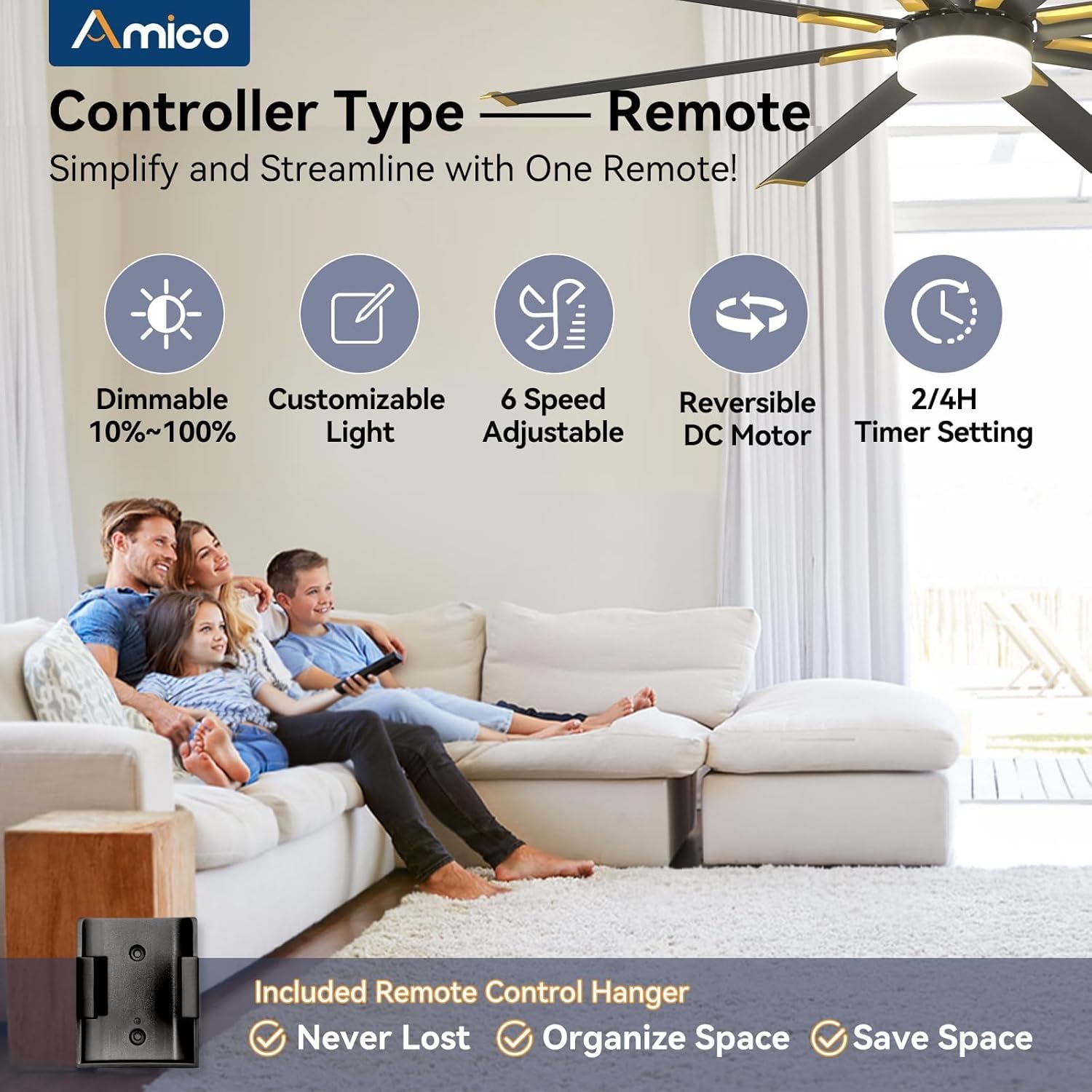 - Noise-Free Reversible DC Motor: Enjoy the serene ambiance, day or night! amico ceiling fan with light is powered by a DC direct current motor, providing an ultra-quiet(<35dB) running experience. The DC motor allows for reversible turn. Turning counterclockwise in the summer to blow refreshingly cool air, and clockwise in the cold season to deliver warm air above the space. Experience the ideal comfortable living environment every day of the year with our fan light!