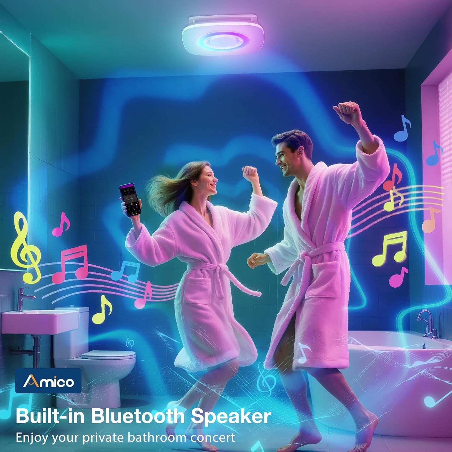 - [Immersive Audio Experience] Immerse yourself in high-fidelity audio with the built-in Bluetooth speaker. Stream your favorite music or podcasts directly from your smartphone, and sync the LED lights to the beat for an unforgettable bathroom concert experience. It’s more than a fan—it's your personal entertainment hub.