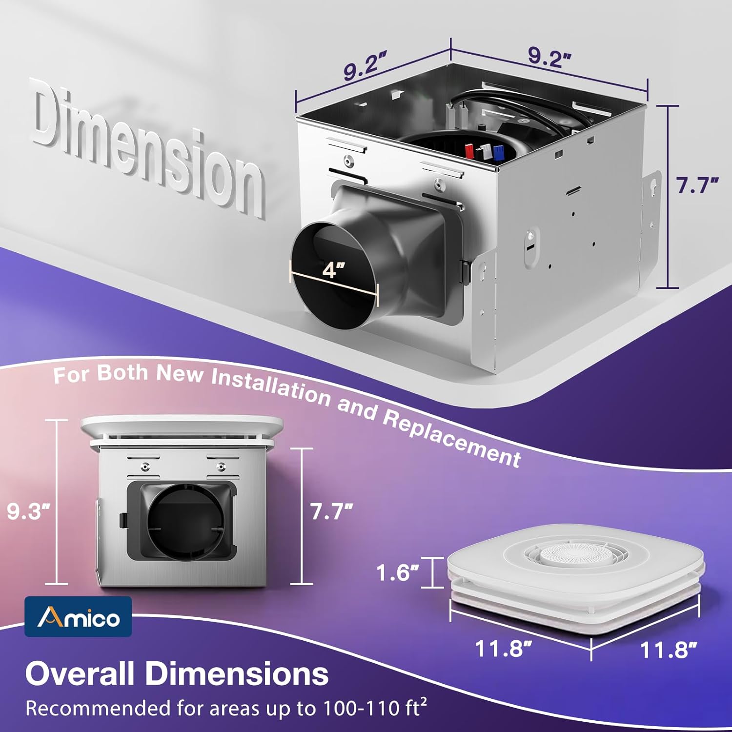 - [Rapid and Quiet Moisture Removal] Featuring a powerful 110 CFM motor, our fan rapidly eliminates steam for a drier, healthier bathroom, keeping your mirror fog-free. It achieves this with a library-quiet operation of just 1.0 sone, ensuring peace without compromising performance.