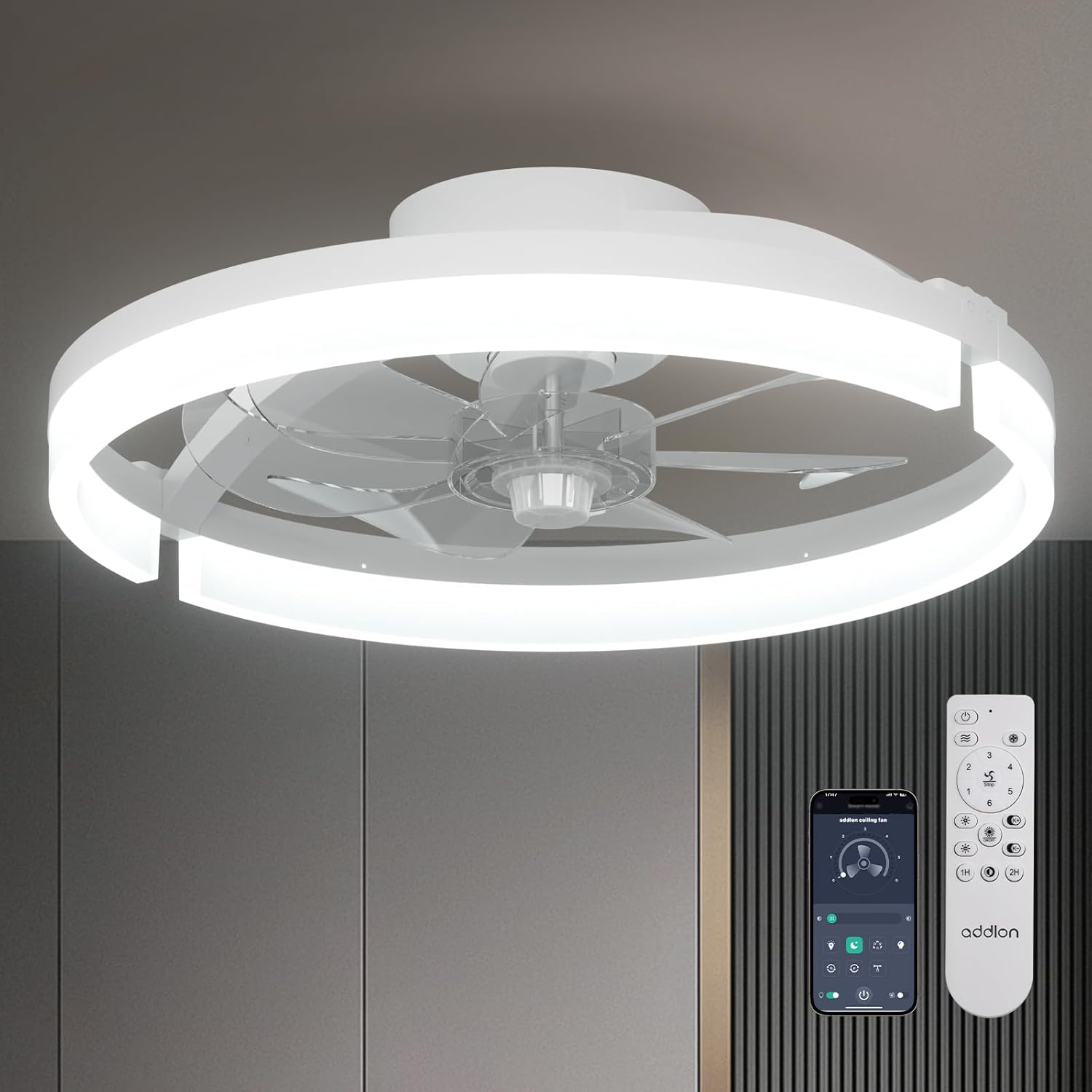 - Easy to Install & Eco-Friendly Design: Enjoy a modular installation experience that takes just 5 minutes to assemble your ceiling fan with light. Our compact packaging design promotes sustainability. The modern, recessed installation is perfect for low-ceiling spaces like living rooms, bedrooms, kitchens, studies, or offices, while the enclosed fan blades ensure safety for your family.