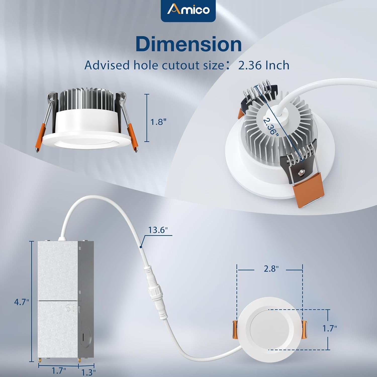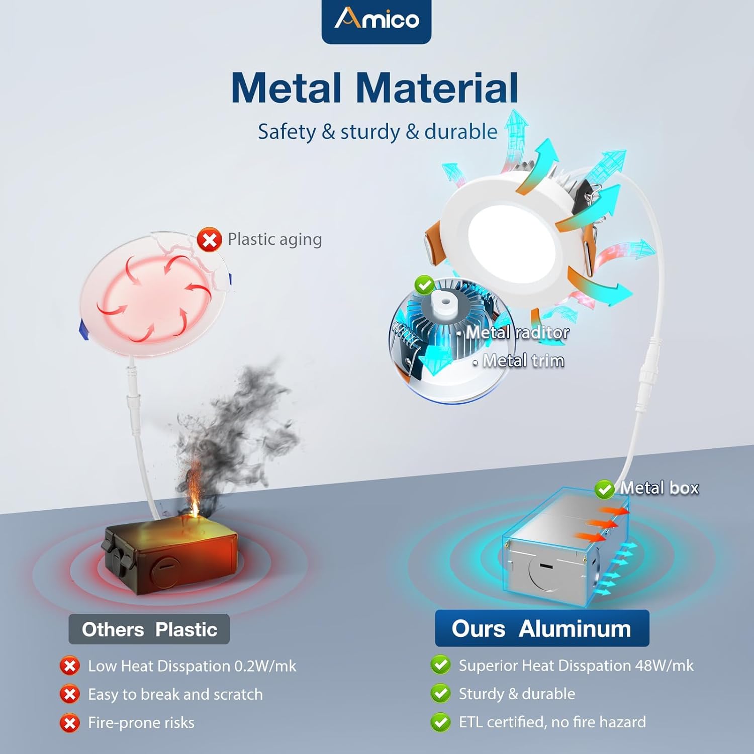 - Amico Benefits: All Amico's led recessed lighting is ETL-certified, ensuring safety and durability with an extended lifespan. Our customer support team will also address your concerns within 12 hours.