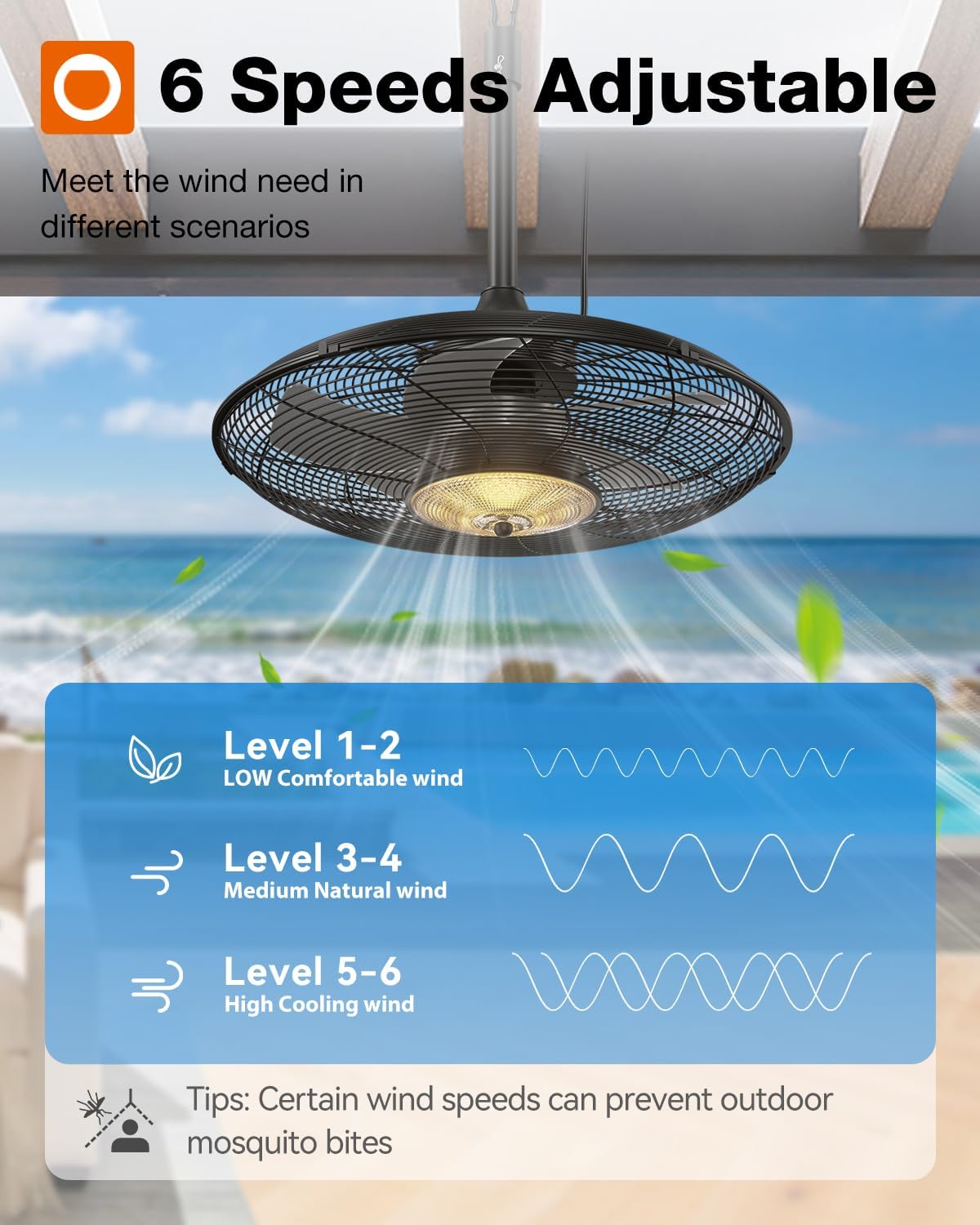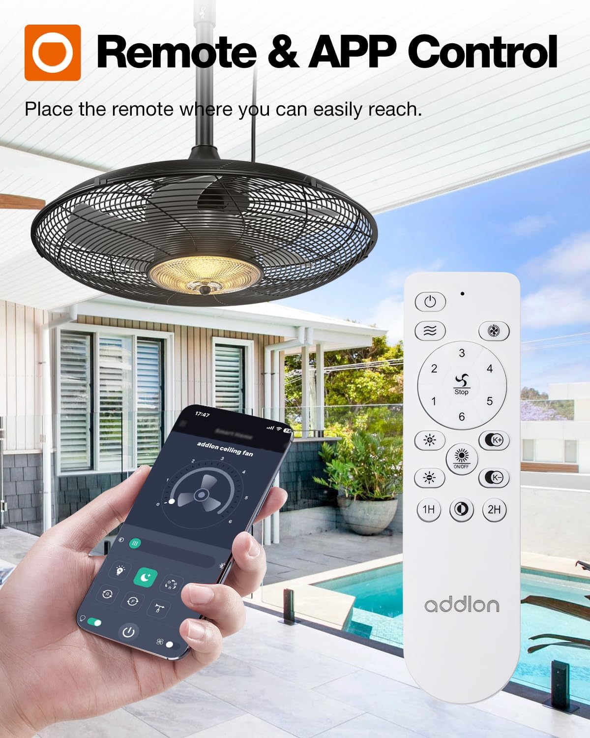 • Outdoor Ceiling Fans with Lights: addlon waterproof caged oudoor portable fan can be the perfect decoration in your gazebo while delivering enough airflow. Perfect for patio,gazebo, balcony and other various outdoor scenes. Also, You can also install it in any indoor scene, such as tool room, garage, farmhouse and more!