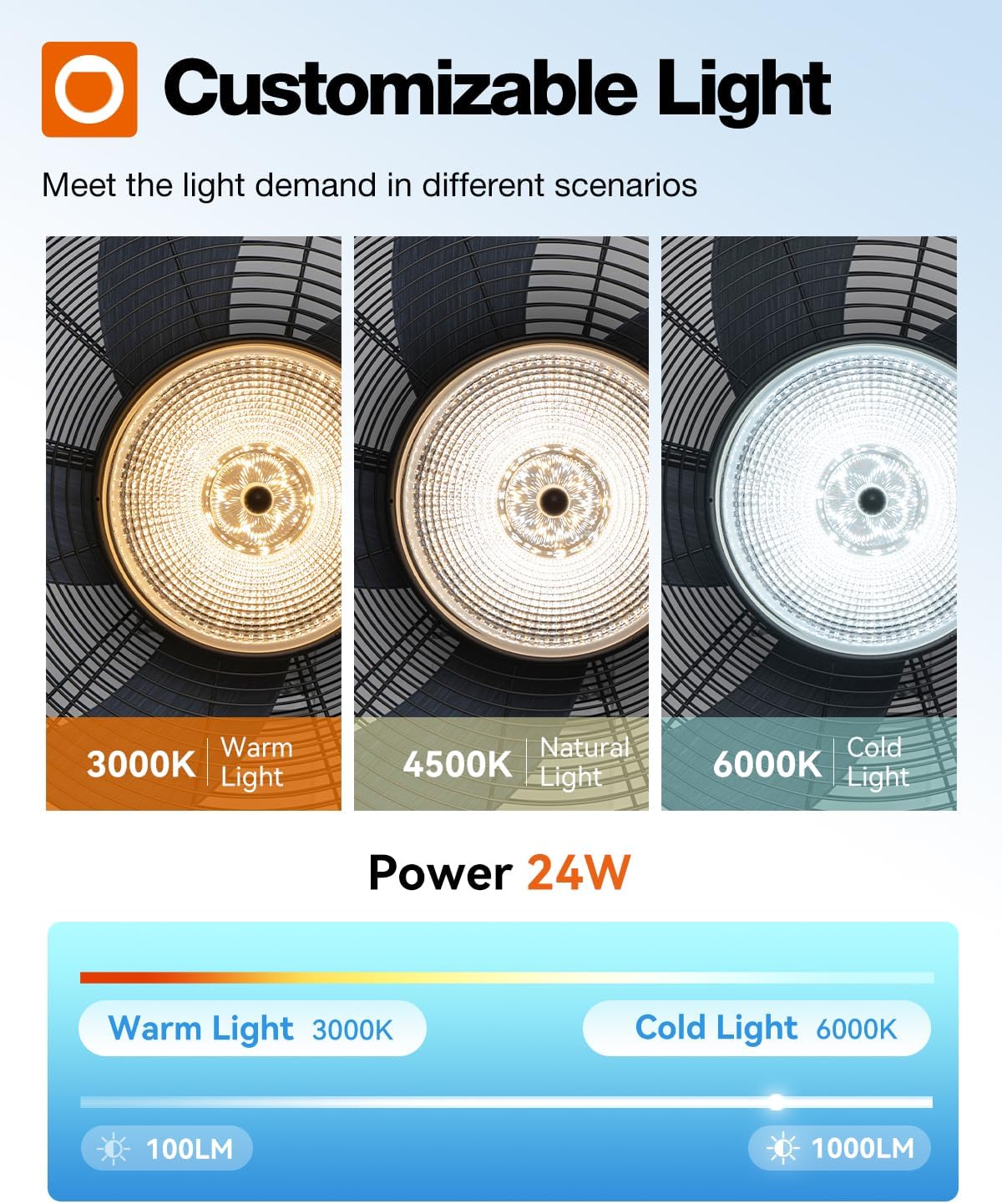 • Customizable Light: Our ceiling fans with lights are dimmable (10%-100%) for allowing you to find the ideal light for every occasion. At the same time, you can also adjust light temperature from 3000K to 6000K.