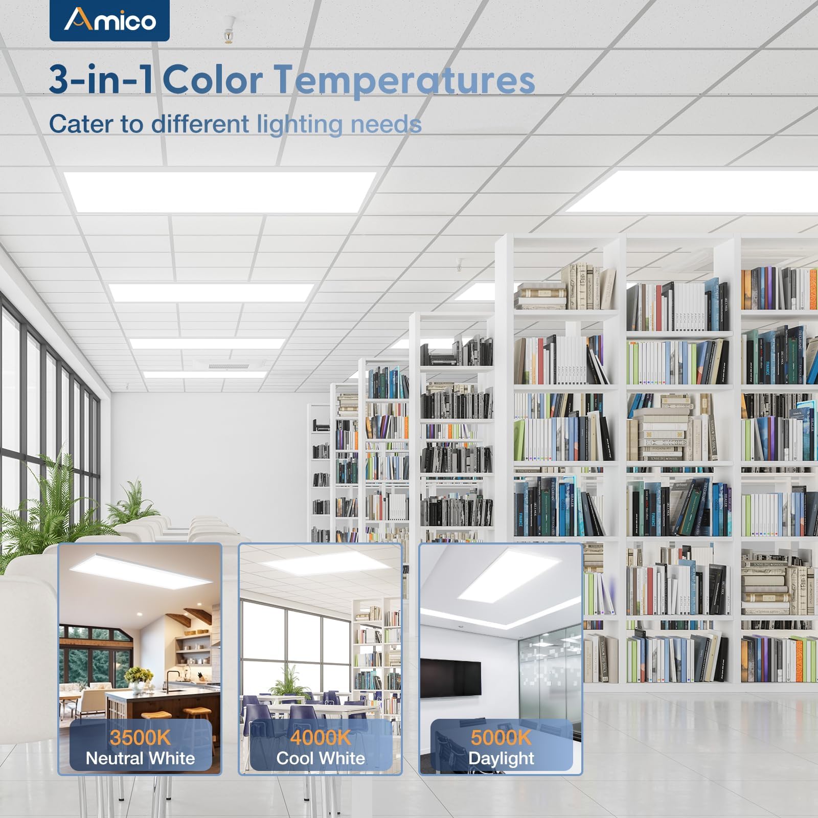 - 3-in-1 CCT: Feature with 3 different color temperatures 3500K/4000K/5000K, you can try out various options by the side panel switch, and then set your choice when installing.