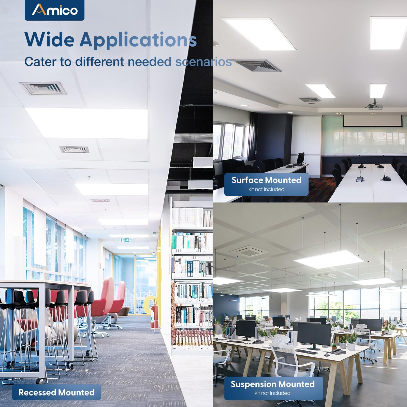 Easy Installation: With a versatile design and easy installation process, these panel lights are suitable for recessed or suspended installation which can be used in various settings. It's a perfect fit for any standard 2x4 drop ceiling grid and can be easily mounted without any additional tools.