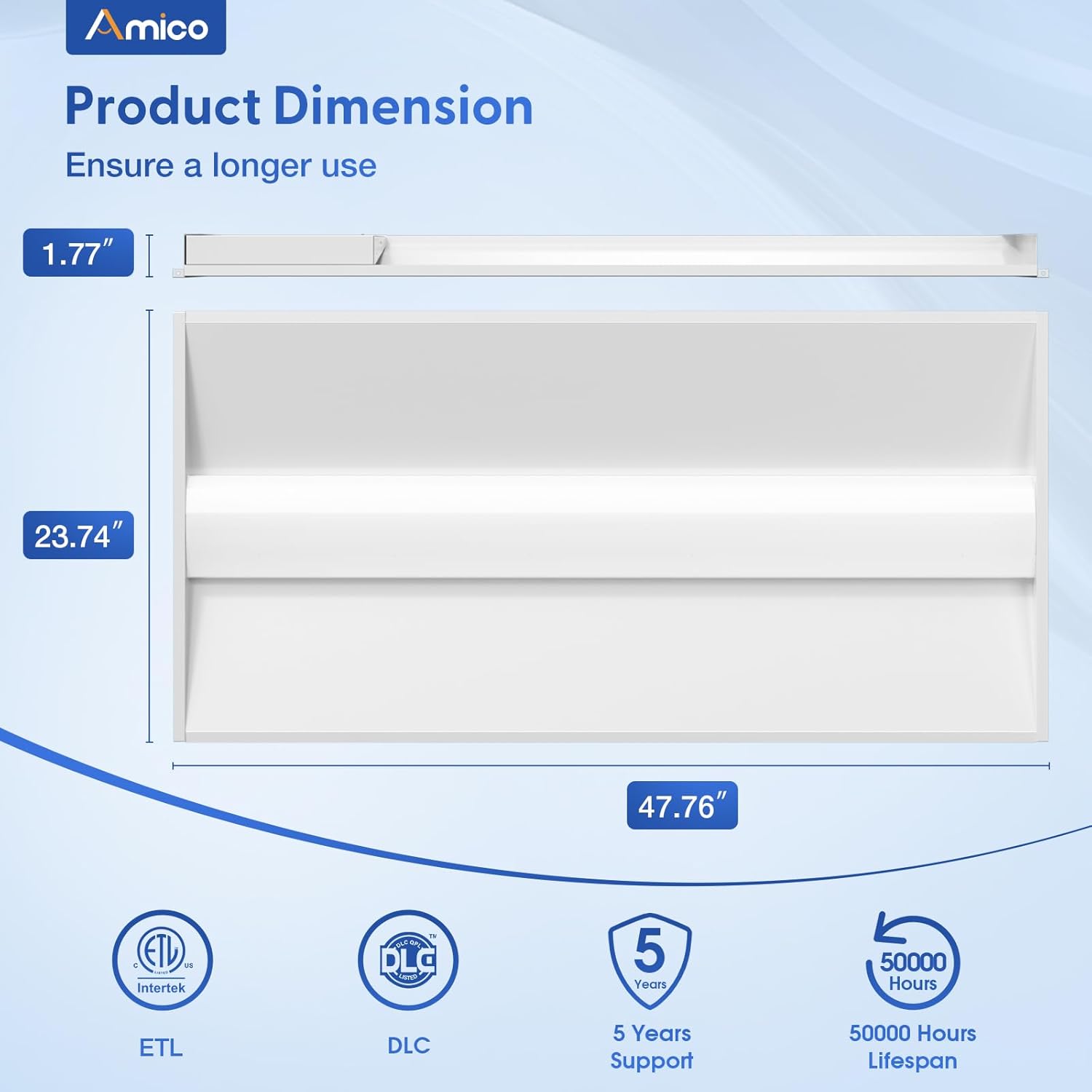 - ETL/DLC-listed high bay light: Our troffer lights are ETL listed and DLC certified which ensures more outstanding products and longer user experience than other lights. And these lights can apply for relevant energy subsidies as it has DLC certified.