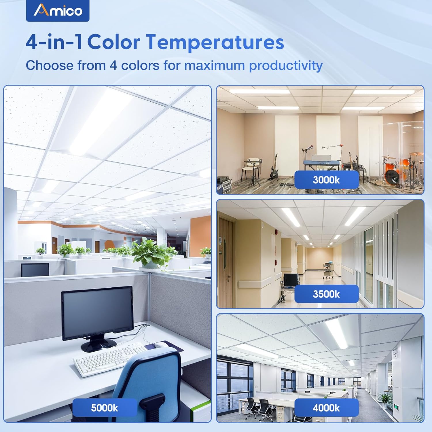 - Easy installation: These led troffer lights can be set up quickly with included mounting hardwares. The slim and lightweight panel light is simple to manage and can be directly installed into a grid ceiling using the built-in clips.