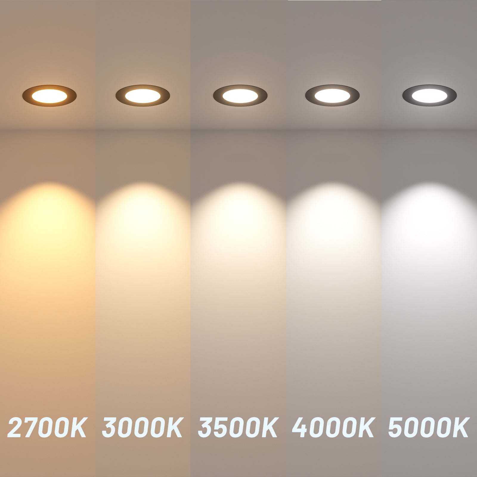 - 5 CCT: 2700K, 3000K, 3500K, 4000K, 5000K, 5 color temperature selectable, no need to worry about what color temperature to buy, eliminates the hassle of returning or exchange products due to inappropriate color temperature.