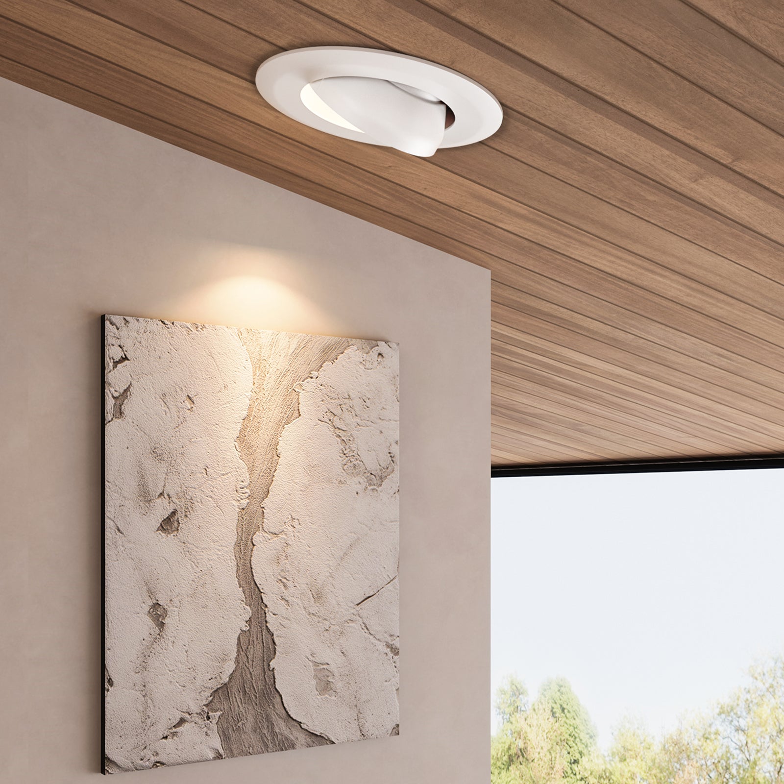 • Adjustable Angles: With a swiveling lens, this LED Gimbal Downlight offers the ability to focus light on artwork, walls, sculptures, and accent pieces in your home or office. Tilt the optic 45° and swivel a full 360°.
