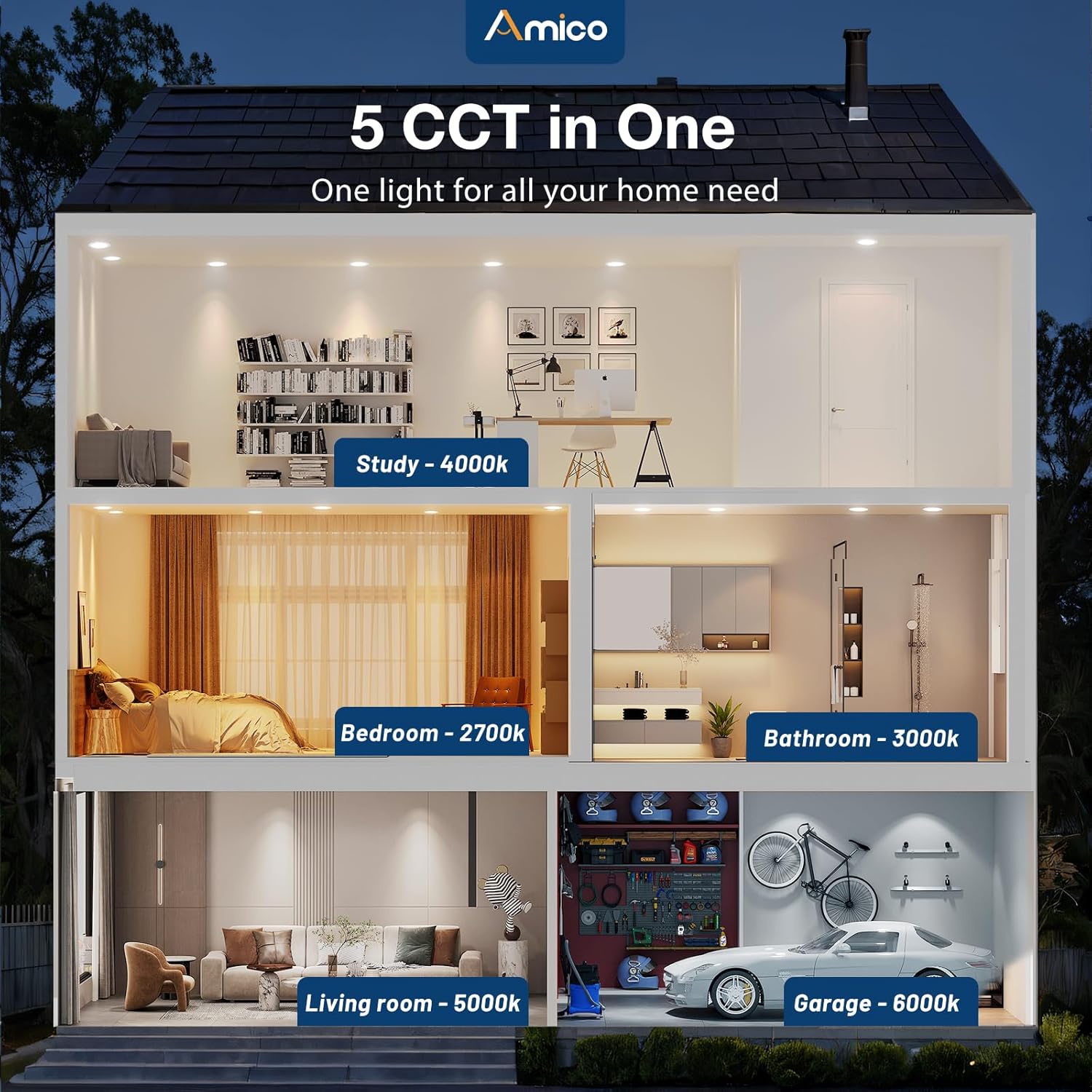 • 5 CCT Selectable: Our disc lights have 2700K, 3000K, 4000K, 5000K, 6000K, 5 color temperature selectable, no need to worry about what color temperature to buy, it eliminates the hassle of returning or exchanging products due to inappropriate color temperature.