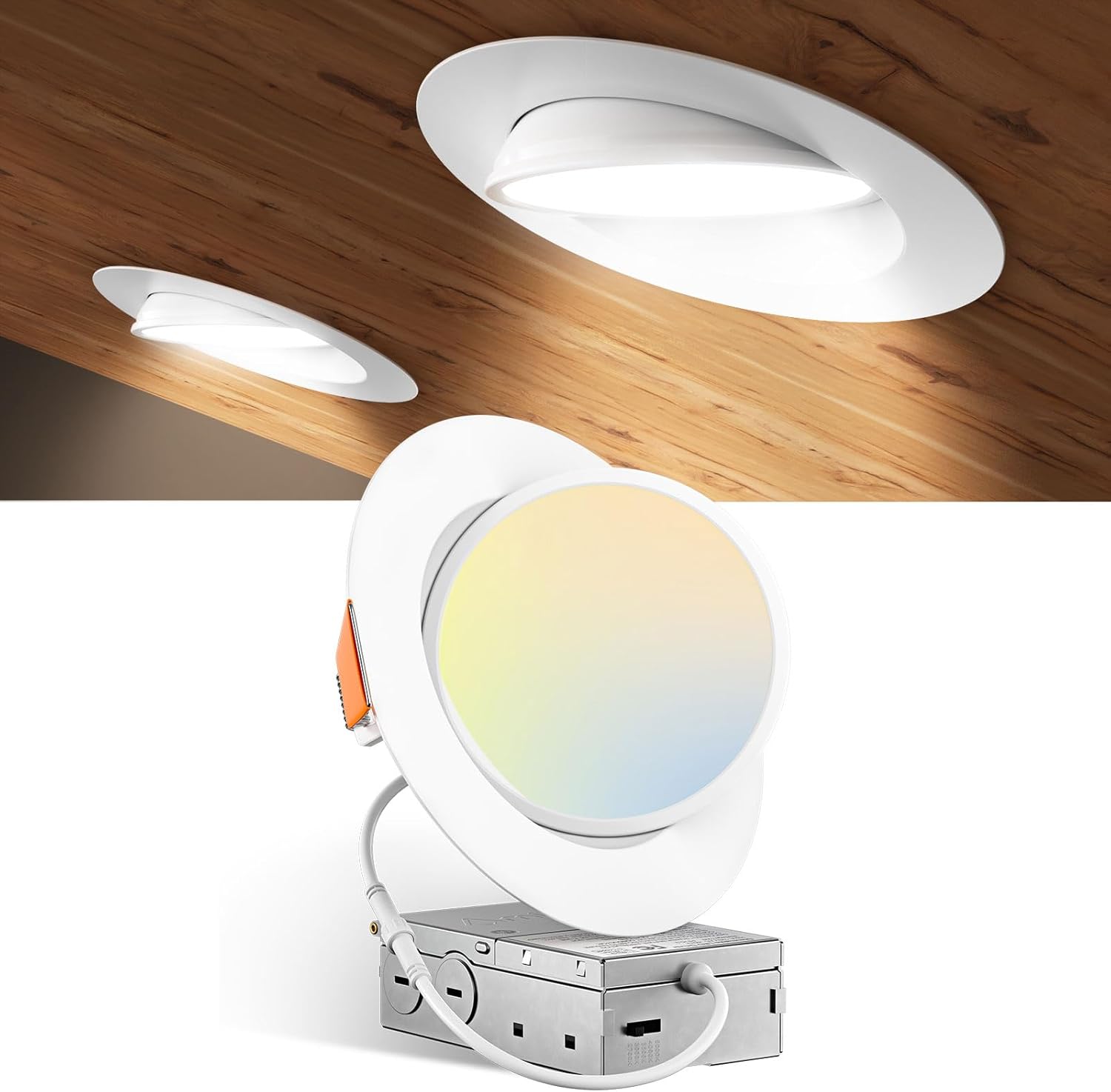 6 Inch Gimbal LED Recessed Lighting, 360° & 90° Adjustable Eyeball, Selectable CCT, 1200 Lumens
