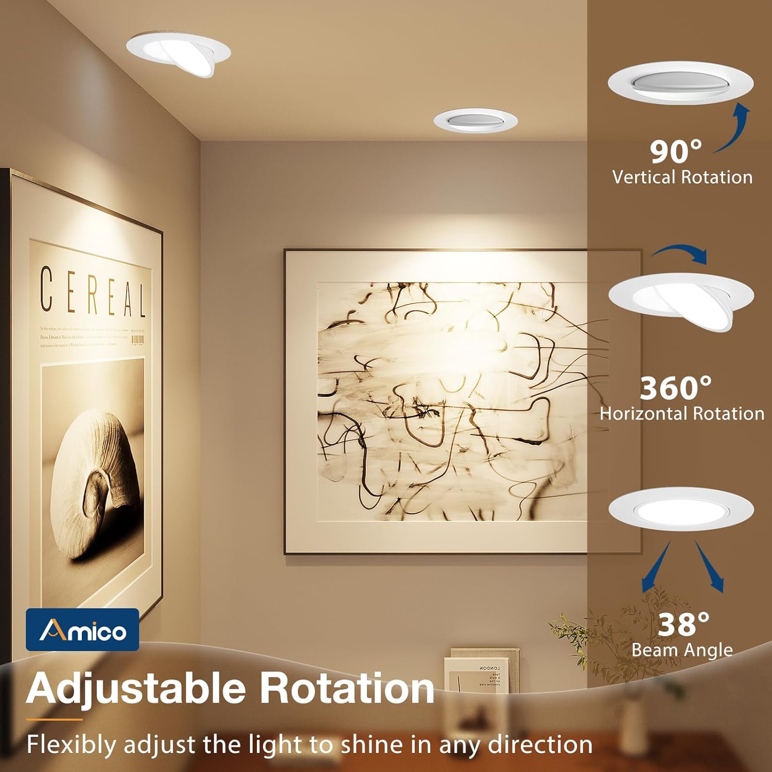 • High Brightness: The 6inch eyeball downlights use the world's leading LED chips with higher lumens and lower power. 1200LM consumes 12 Watts, which equals to 70W halogen lamp, saving you up to 90% in energy costs. CRI>90 can better restore the true color of the object and bring the most realistic visual lighting experience.