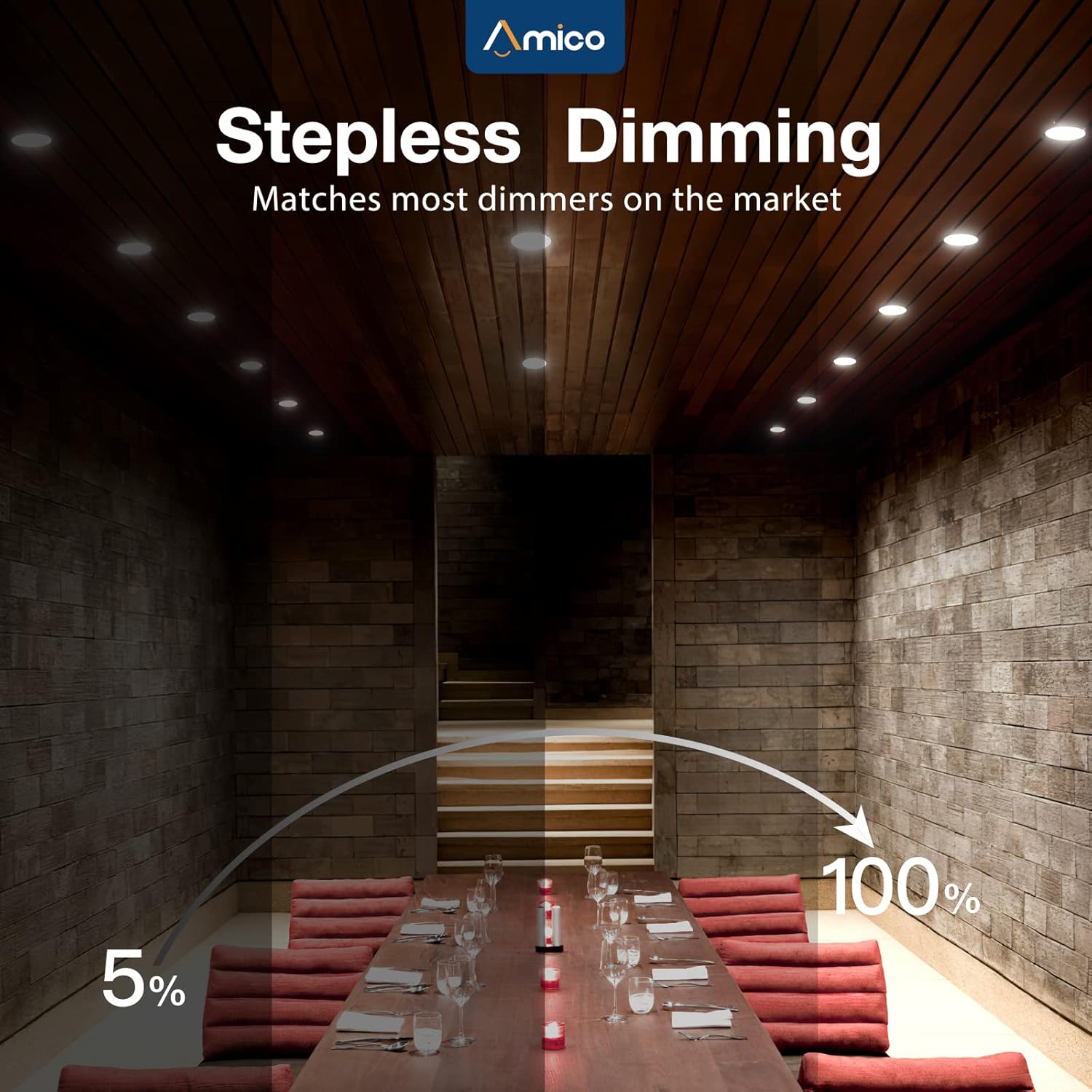 • IC Rated: Amico's canless LED recessed light is IC rated, which is permitted to be in contact with insulations in ceilings, meaning the junction box is thermally protected. It only requires as small as 2 inches ceiling spaces, fits various ceilings, and joists. It won't cause a fire in the roof or overhead joist space.