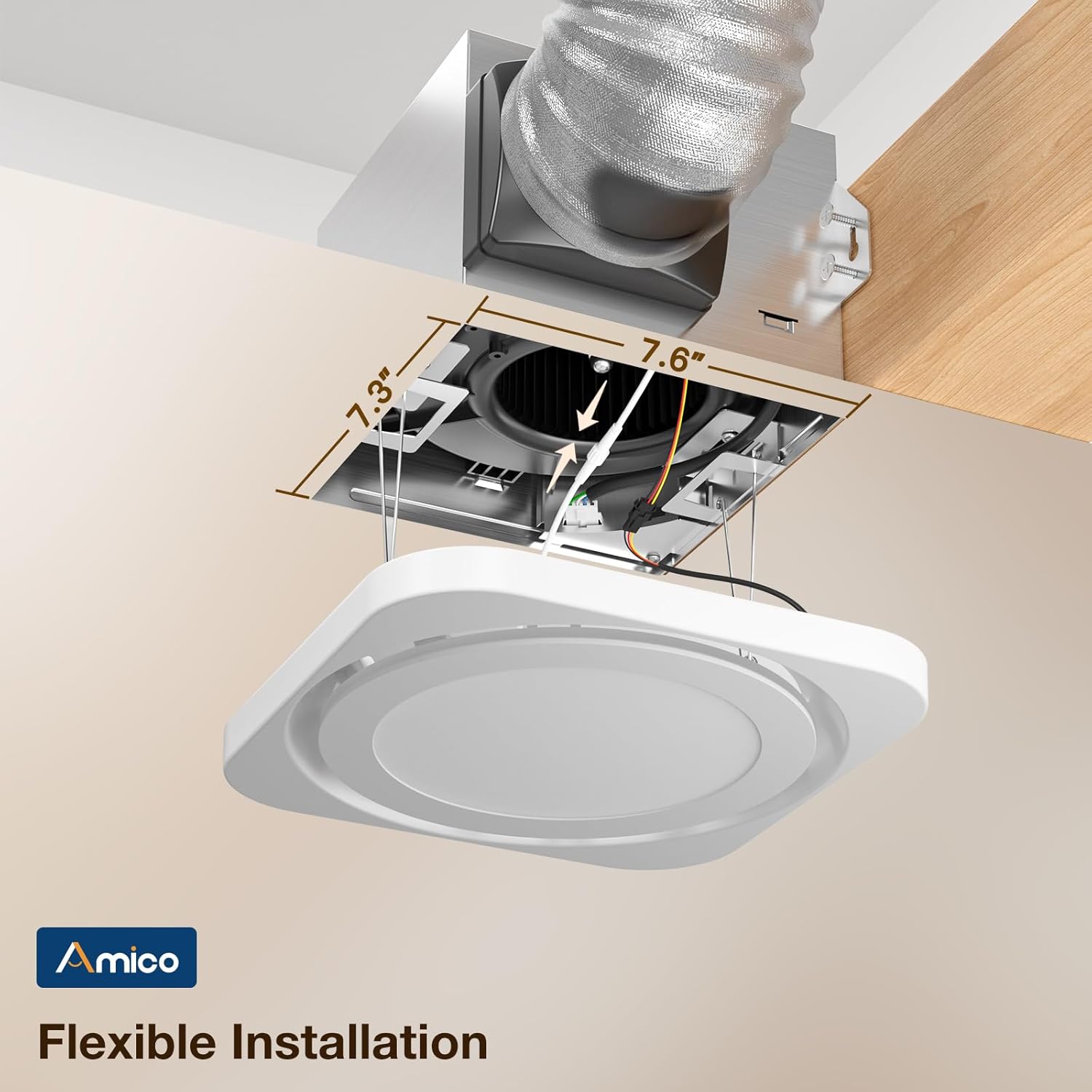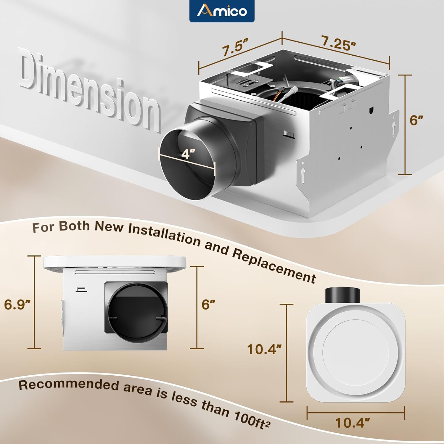 - [The Perfect Fit for Any Bathroom] Fits standard 9.4"x9.4" ceiling openings—ideal for new builds or replacing old fans.Sleek, powerful, and designed to circulate air efficiently in spaces up to 110 sq ft.