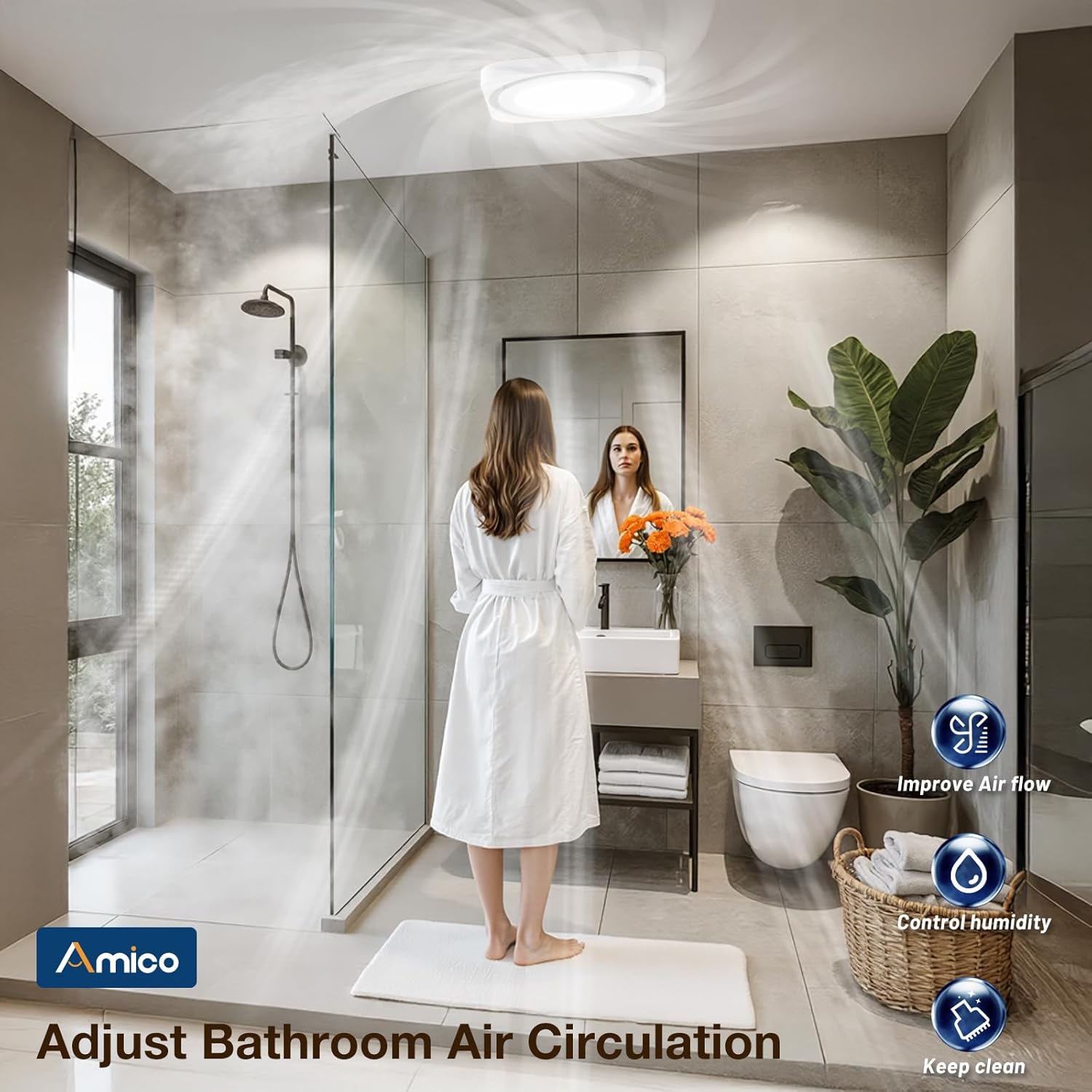 - [Breathe Deep in a Fresher Space] Powerful 110 CFM airflow quietly removes thick steam and moisture, leaving your air light and clear.Step out to a fresher space—free from dampness and stuffiness.