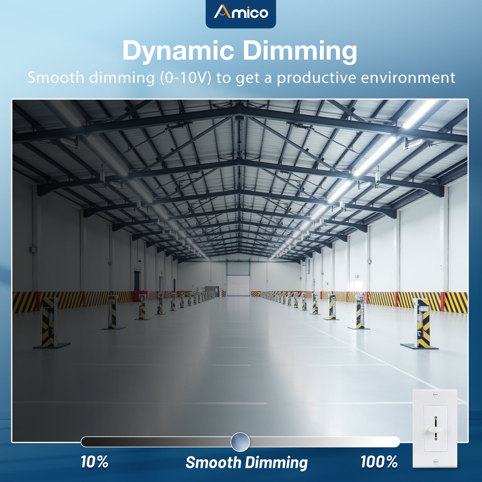 Amico 4 Pack 8FT LED Strip Lights with 3500K/4000K/5000K 3CCT Selectable, 90W/75W/64W Adjustable, 0-10V Dimmable LED Linear Strip Shop Lighting Fixture for Garage Workshop, ETL/DLC Certified