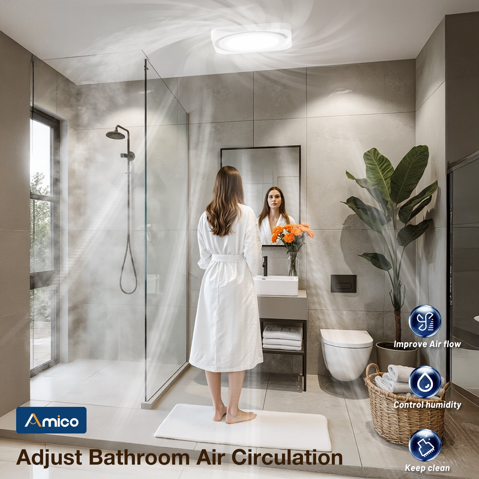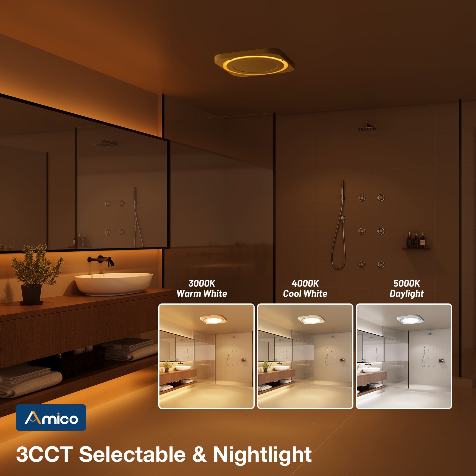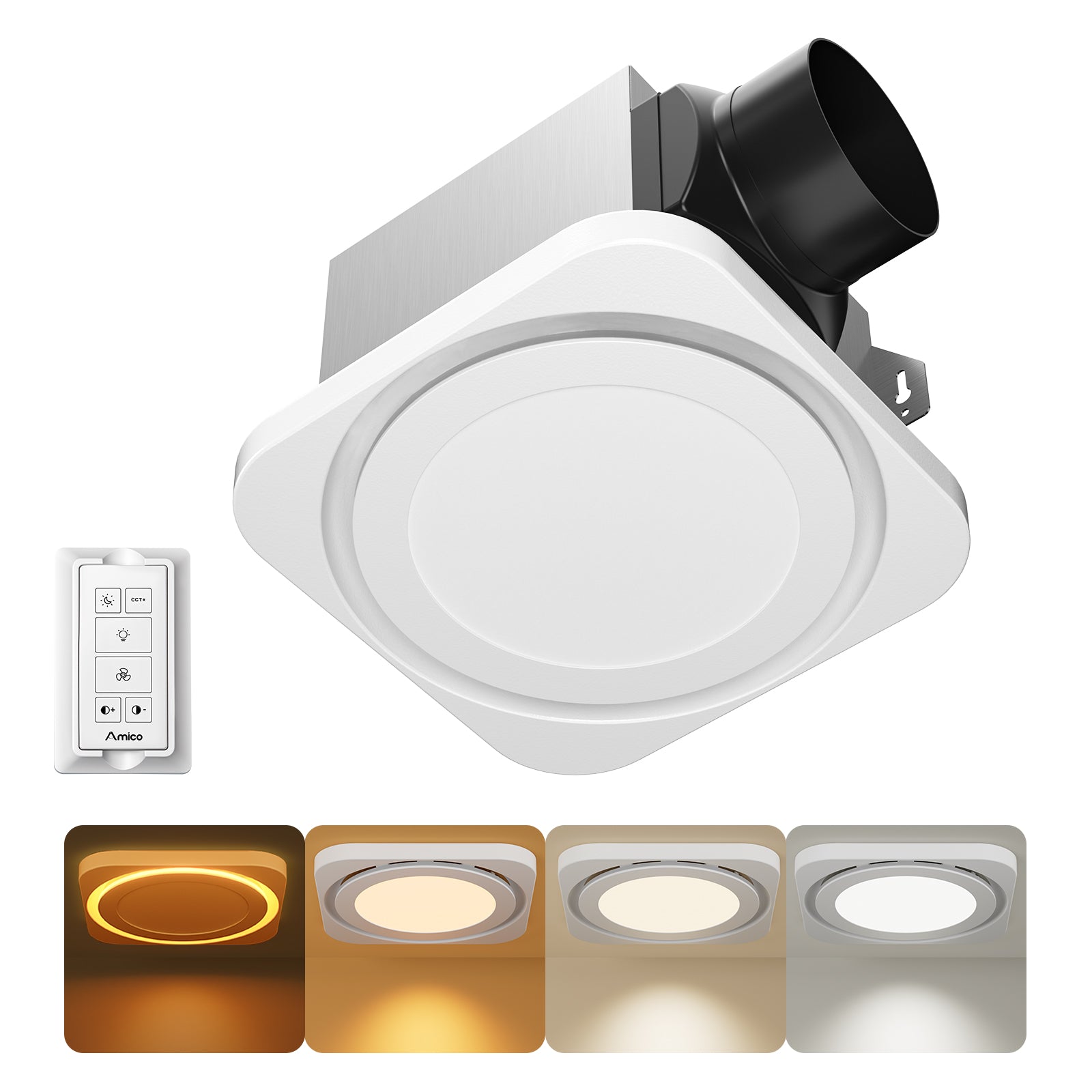 Amico Ceiling-Mounted Bathroom Ventilation Fan with LED Light, 80 CFM, 1.0 Sone, 18W 1400lm, 3-CCT Selectable, Nightlight, Remote, FCC Certified