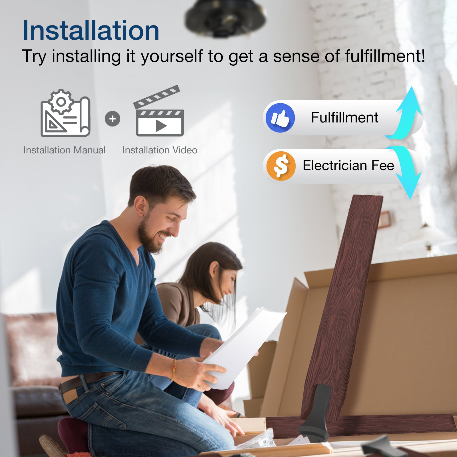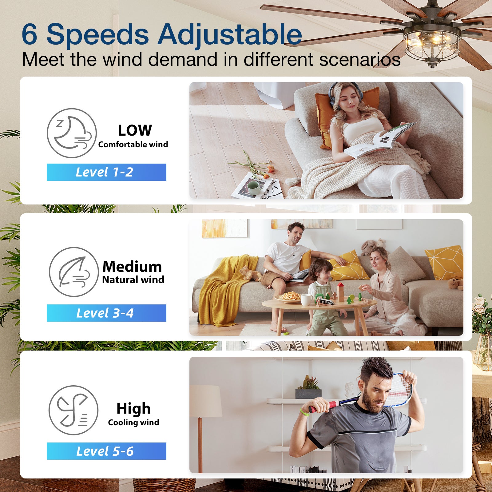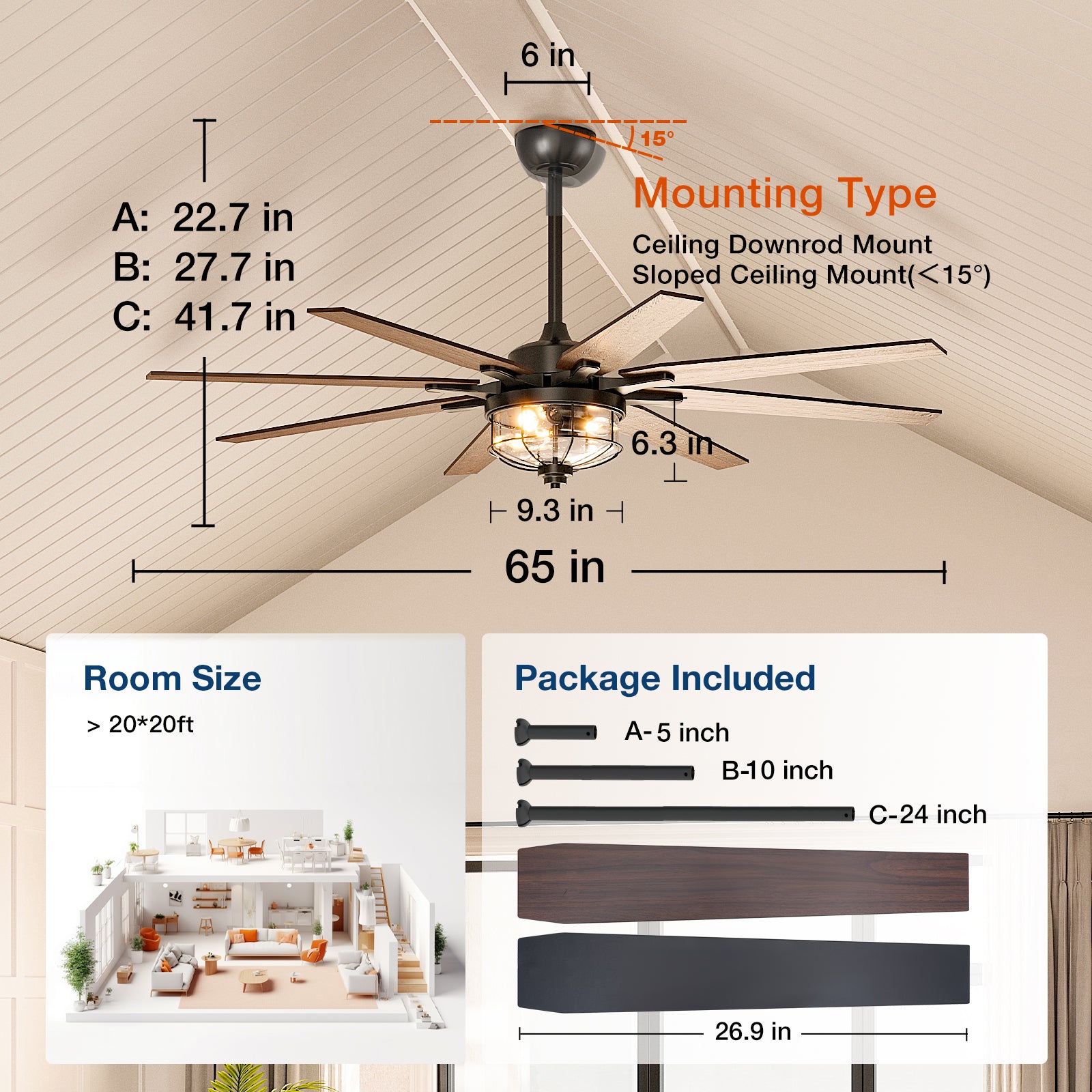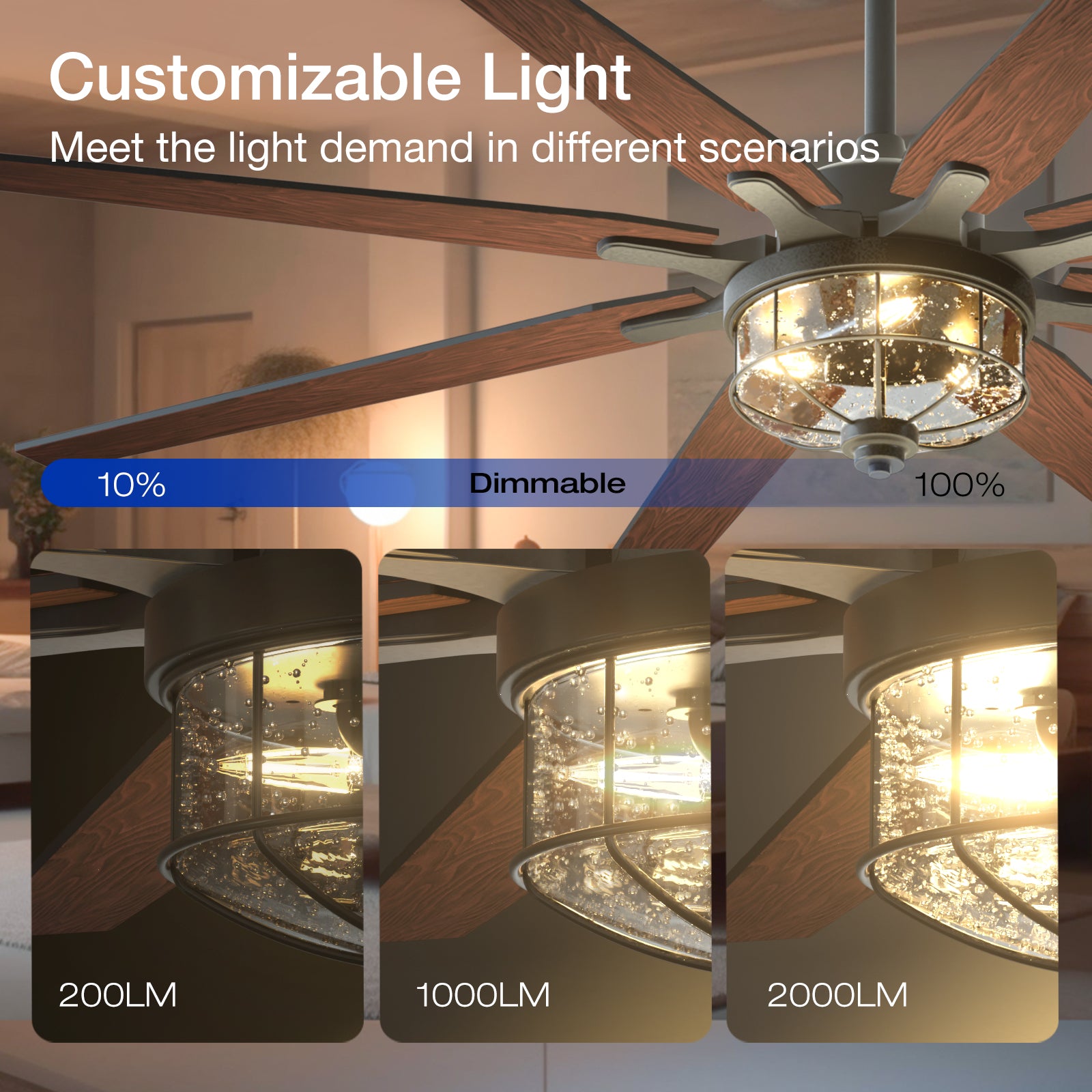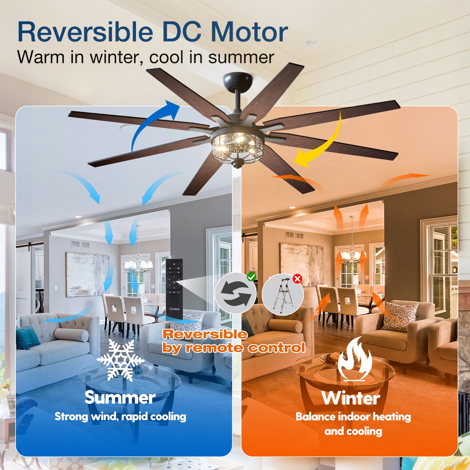Ceiling Fan with Light – 65", 8-Blade, Reversible DC Motor, 3CCT, Dimmable