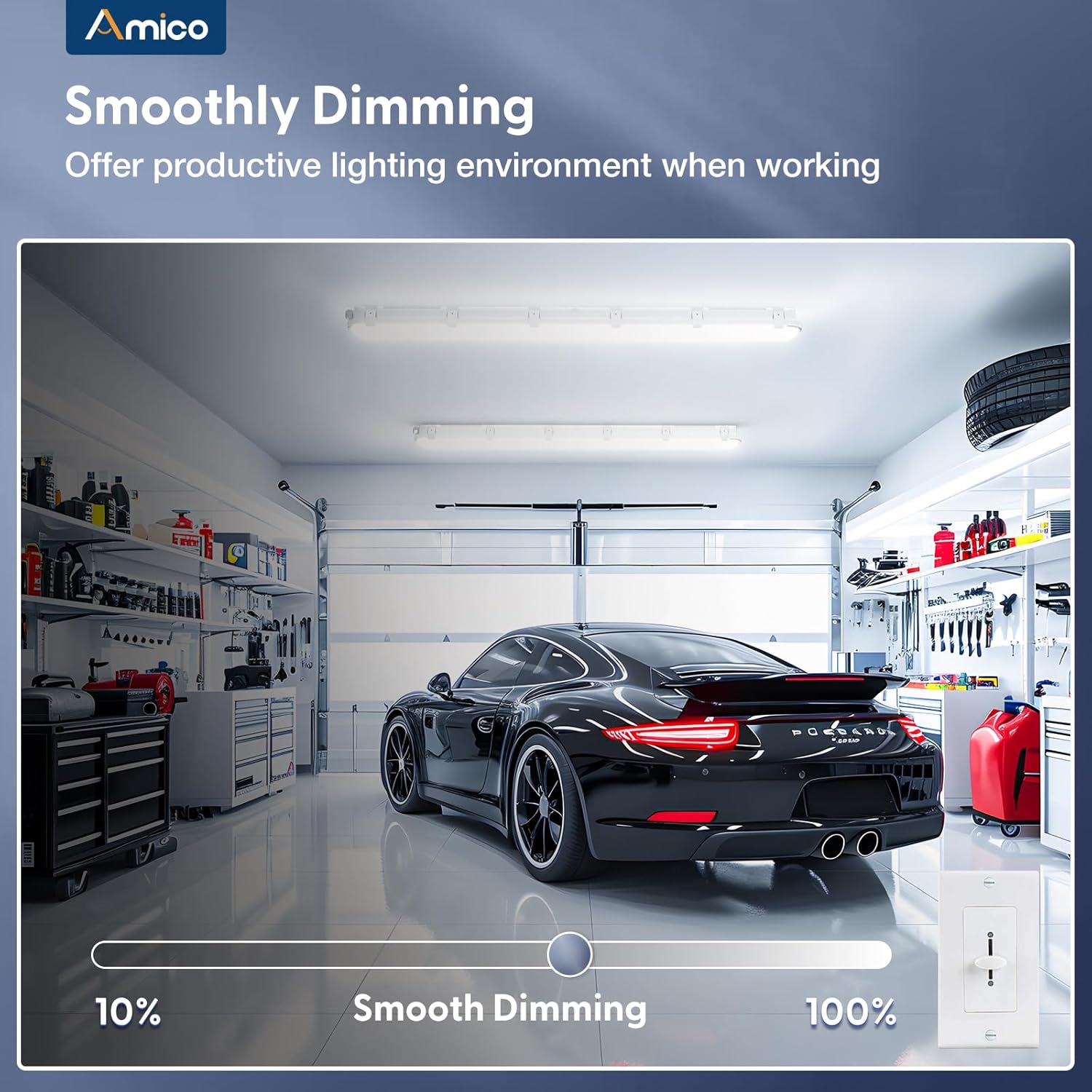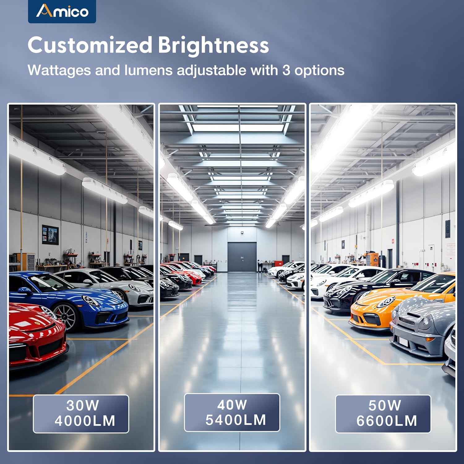 • Dimmable & 3 adjustable wattage: Our led vapor tight lights feature 30W/40W/50W 3 wattage adjustable and 0-10V dimmable to meet different illumination demands. It can be widely applied in car wash, warehouse, barn, walk in freezer, stairwells and tunnel where moisture is a concern.